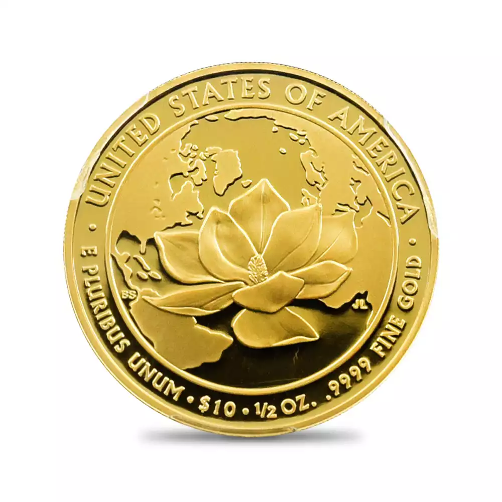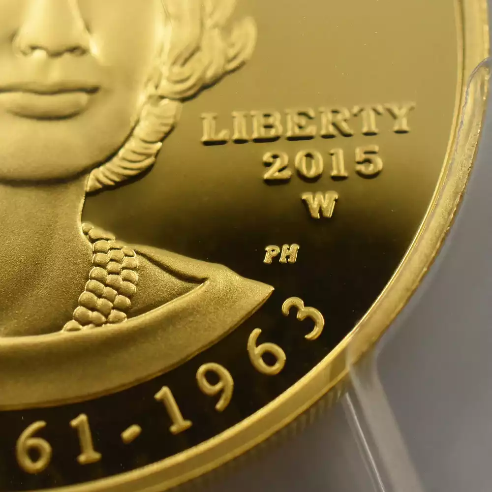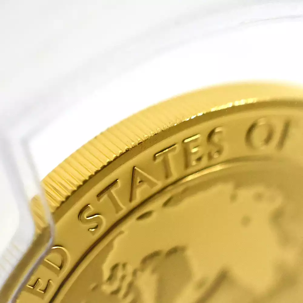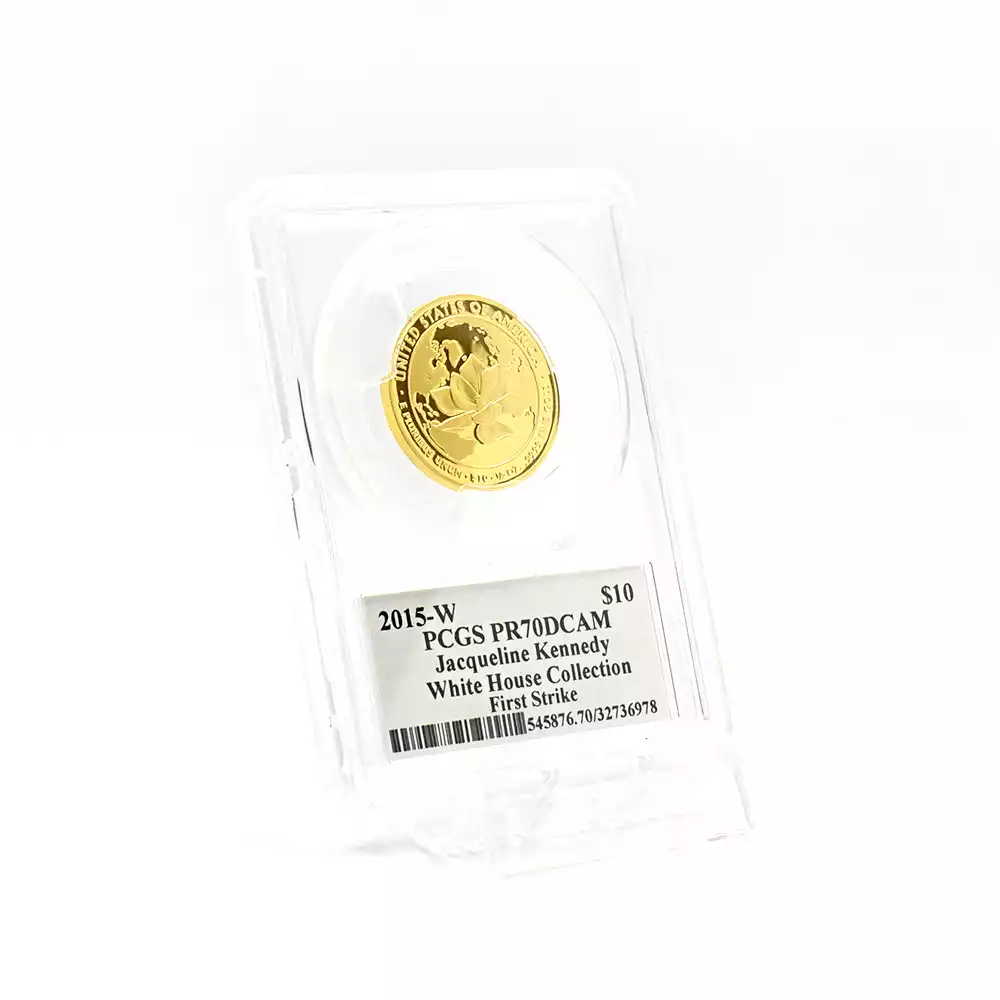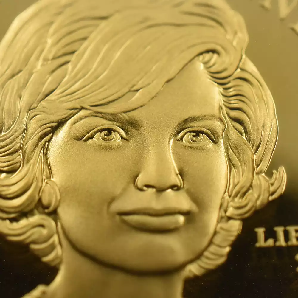 ジャクリーン・ケネディーがアメリカ史上最も名高く、最も知性溢れるファーストレディーであることに異論の余地はないことと思われます。選挙での夫の勝利によってホワイトハウスの住人となったジャクリーンが最初に行ったことは、室内の再装飾を含むその徹底した改修作業でした。歴代大統領の居住空間として歴史に彩られたホワイトハウスですが、ジャクリーンが大統領夫人となった頃には創建当時の18世紀の輝きは完全に消え去っていました。そこでジャクリーンは持ち前の審美眼を駆使して内部を全面改装し、アメリカ全土の骨董業者から装飾に必要なアンティーク家具を買い集めました。その結果、支出は膨大な額に上り、年間維持費を僅か1カ月足らずで使い果たしてしまったという伝説が残っているほどです。しかしジャクリーンがホワイトハウス居住時に果たした役割は室内装飾家のそれを遥かに超越するものでした。その類まれなる感性によってホワイトハウスをアメリカ文化を象徴する空間へと生まれ変わらせたジャクリーンでしたが、「この国で一番素晴らしい家であり、人々が誇りに思い、この偉大なる国家の歴史を伝える生きた博物館のようでなければならない」と常に語っていました。その高邁な理想は、今もワシントンD.C.に存在するこの神聖なる殿堂に息づいています。さらに全面改装の2年後には「ジョン・F・ケネディー夫人によるホワイトハウス・ツアー」と題するテレビ放映用のドキュメンタリー作品が制作され、これも好評を博しました。これは大統領夫人自らが館内の解説を担当し、国民にその歴史的意義を伝えるという画期的な内容を特徴とするものでした。アメリカ合衆国造幣局の人気シリーズ「ファーストレディー・コレクション」は2015年、この不世出のファーストレディーの優れたポートレートを初めてコイン上に刻み空前の成功を収めました。大統領夫人としての在任期間を示す西暦と共に、在りし日のジャクリーン・ケネディー生き写しの颯爽たる姿を表面のポートレート上に浮かび上がらせています。時代のファッションアイコンとしても一世を風靡したこの忘れられないファーストレディーのきめ細やかな表情を見事に再現しています。そして裏面中央には優美な大輪の花が描かれ、アメリカ合衆国の標語である「多数から統一へ」の文言が印象深く刻まれています。アメリカコイン屈指の人気コインシリーズ初となる待望のポートレートの満を持しての解禁となります。