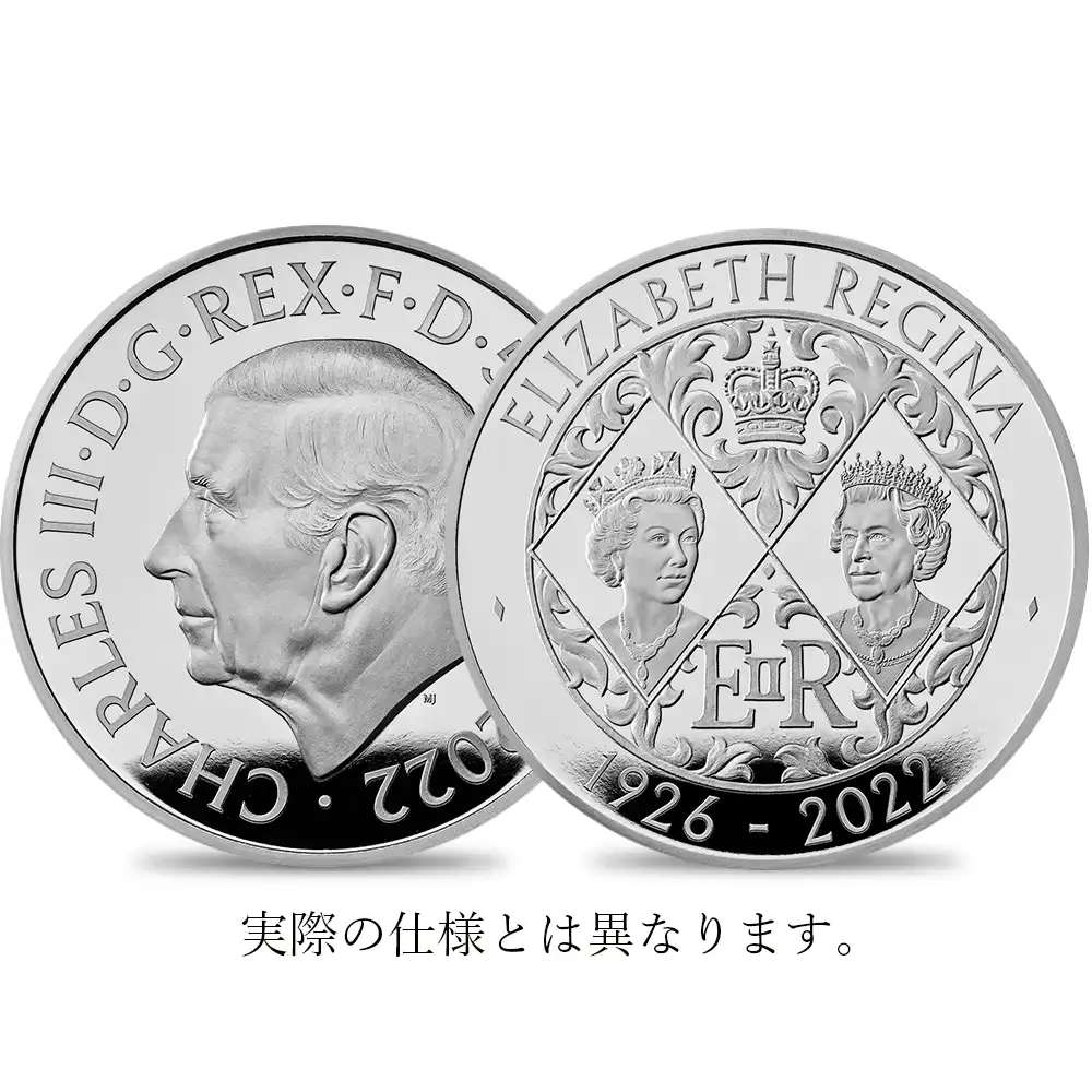 イギリス連合王国と連邦の新国王チャールズ3世の治世初となる当コインは、70年7か月に及んだ前国王エリザベス2世の驚異的な在位期間とその栄光の統治を恒久化するものです。コイン表面には新国王の左向きのポートレートが掲げられていますが、そこには過去の英国王のために制作されたコイン表面に顕著であった月桂冠も王冠も見当たりません。過去70年間、一人の人間としてまた英国王太子として人生を送ってきたチャールズ3世のありのままの姿を自然に浮かび上がらせているに過ぎません。しかし、その写実的な描写は極めて高い完成度を誇るもので、絵画的でもあります。そこに感じられるのは英国紳士の永遠の原点である「持てる者が持たざる者に多くを与えるべき」という英国特有の基本概念「ノブレス・オブリージュ」の精神です。そしてこの肖像が醸し出している崇高な精神性は、そのまま国王の社会に対するこれまでの献身を反映しているように思われます。王太子時代の王の名の下に設立された「Prince’s Trust」は、英国社会において社会的弱者と見なされていた若年貧困層に救いの手を差し伸べることを主眼とした公的機関として知られ、職業訓練の機会を与え、若者の就業率を向上させることに成功し、高評価を獲得しました。新国王の慈愛に満ちた美しい肖像を表面に刻む当コインの裏面は、国王の最愛の母エリザベス2世の栄光の治世とその思い出に捧げられています。まず中央には女王の2種の異なる肖像が描かれていますが、左の肖像の頭上には「ジョージ4世のステート・ダイアモンド・ダイアデム」が見られ、右の肖像は「大英帝国とアイルランドの少女たちのティアラ」を戴く在りし日の女王の颯爽たる姿を描いています。これらは女王が生涯を通じて愛用した宝飾品であり、何よりも英国王室の偉大なる過去を彷彿させる歴史的遺産でもあります。裏面上部には「エリザベス女王」を意味するラテン語が書かれており、下部には女王の生年と没年が刻まれ、96年間に及んだ激動の生涯を回顧しています。そしてその間には女王が即位後に継続的に使用していた君主としての紋章「ロイヤルサイファ」が格調高く刻まれています。当コイン両面のデザインは、在りし日のエリザベス2世の栄光の治世を讃えるとともに、新国王チャールズ3世の新しい治世に対する期待を覗かせるものです。英国王室の過去、現在、未来を表現し尽くす当コインの英国貨幣史上での価値は計り知れず、今後、コイン界のみならず広く世界的な脚光を浴びることは間違いありません。