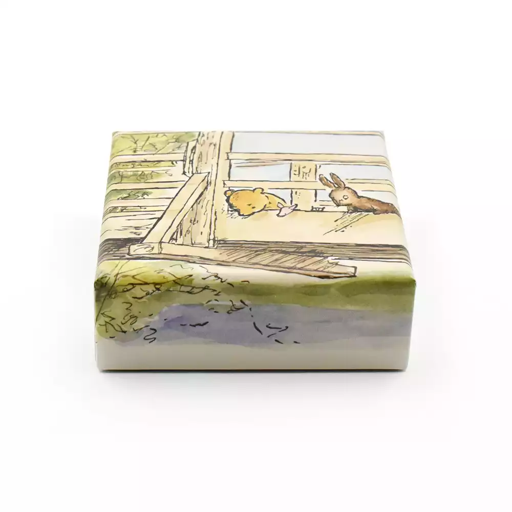 作者のミルンが40代の時に刊行された「くまのプーさん」は、それまでにミルンが手がけていた童話集と同じく、自身の息子クリストファーに捧げられた作品であり、クリストファーの持つぬいぐるみたちが活躍する物語として構想されたと言われています。英語では「ウィニー・ザ・プー」と呼ばれている「くまのプーさん」ですが、これは当時ロンドン動物園で公開され人気を集めていたカナダのウィニペグから来たクロクマの「ウィニー」に因んでいます。動物を模したぬいぐるみたちにセリフと性格を与えたのはミルンの妻ダフネで、ぬいぐるみたちと一人遊びをする息子の母親役として参加することによって物語に少しずつ生命が吹き込まれて行き、傍観していたミルンがそれを描写することによって徐々に物語が形成されて行きました。「くまのプーさん」の物語世界を見事に映し出したシェパードの情感豊かな挿絵は、有名なジョン・テニエルの「不思議な国のアリス」のそれと比較対比されるほどの高い評価を受け今日に至っています。