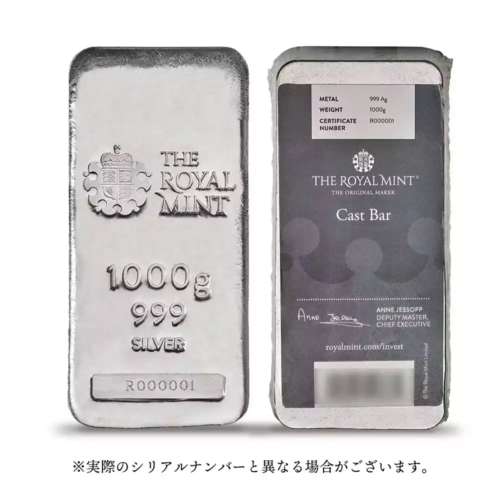 イギリス 銀の延べ板 シルバーバー 1キロ(1000グラム 1000g) ロイヤルミント発行 【10本】 (桐箱付き)
