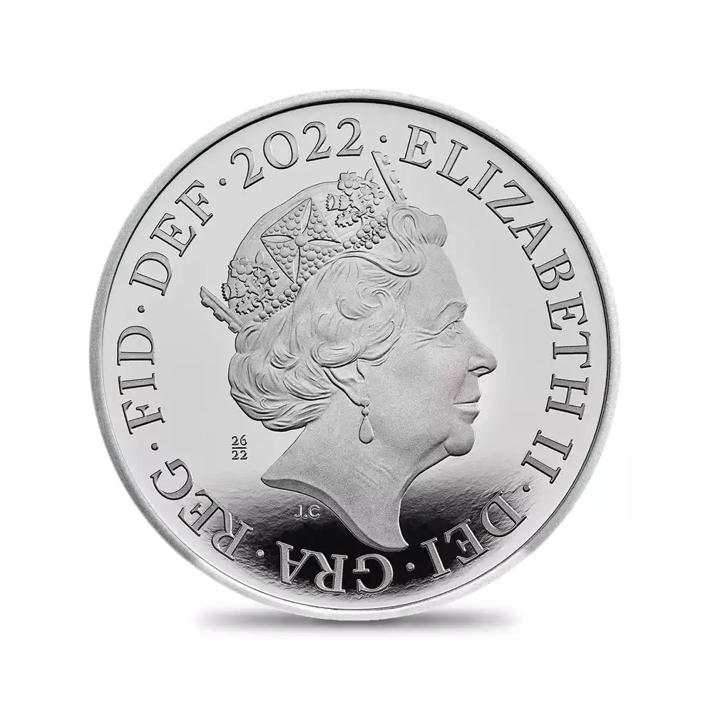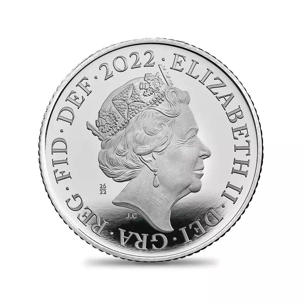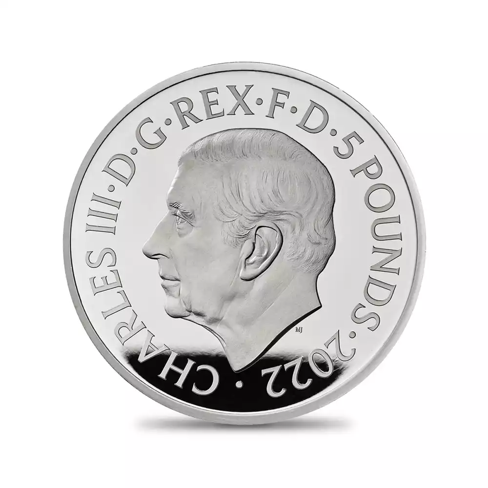 2022年9月8日に96年間の生涯を終えて天国に旅立たれたイギリス連合王国君主エリザベス2世(1926-2022)。70年間にわたったその栄光の治世下に於いて英国は第二次世界大戦の荒廃からの奇跡の復興を遂げ、かつての壮大なる大英帝国の後裔として無限の発展を謳歌しました。20世紀後半から21世紀初頭にかけての英国にとっての「現代」と時を同じくして君臨した女王は、正に国家の象徴として70年の生涯を連合王国の命運に捧げられました。常に敬愛された偉大なる君主エリザベス2世の訃報が世界を駆け抜けてから約1ヶ月後には早くも追悼記念コイン3種が発表され、表面に刻まれた新国王3世の治世初の公式コイン肖像の初披露もあって大いに世間の注目を集めました。そしてそれから更に2カ月の時を経て、英国コインの発行元であるロイヤルミントは遂にここに高い完成度を誇る第一級の芸術品を生み出すに至りました。全10枚から成るこのプルーフコインセットは、エリザベス2世の感動の70年の追憶に捧げられると共に、今後も脈々と受け継がれるはずの英国王室の栄光の未来に光彩を与える格調高い記念品でもあります。まず目を引くのはそれらのコイン表面に描かれている新旧両国王の公式肖像です。2015年の初お目見え以降、英国コインの顔として存続し、今も人々に愛され続けているエリザベス2世の「第5肖像」ですが、先刻、今年限りでの発行の停止が発表され、真の伝説への仲間入りが待たれるばかりとなりました。幸運にも当プルーフコインセットにこの名作が含まれていることは何にも代えがたい喜びであり、女王の足跡を永遠に刻む追悼コインセットに相応しい内容となっております。ロイヤルミントの俊英ジョディ・クラークのキャリアの頂点を示すこの晴れやかなポートレートは、90歳を前にした最晩年の女王の孤高の境地を鮮烈に描き切っています。そしてこの度の当プルーフコインセットの解禁を以って、この非常に愛されたポートレートは永久に封印されることとなりました。待望の新国王チャールズ3世の写実性極まりない公式コインポートレート第1弾は当プルーフコインセットに於いても健在です。現代ロイヤルミント屈指の才能の持ち主、マーティン・ジェニングスによるこのコインポートレートの秀作は、新国王自身の愛顧を得て英国貨幣界の未来を一身に背負う大作として世に送り出されました。ウィンザー朝の正統な後継者として生を受けた国王チャールズ3世のありのままの姿を描くリアリスティックな筆致を特徴とするこのポートレートは、73歳にして英国王位を継承するに至った一人の男性の円熟を示す情感豊かな描写が感動を誘います。当コインセットの裏面には英国を永遠に守護する女戦士ブリタニアやイギリス連合王国各国の国章や国花など、エリザベス2世の君臨した栄光の70年間を力強く表現する厳選された意匠が刻まれていますが、これらは今後も英国が幾世代にわたって継承して行く永遠の遺産でもあります。ウィンザー家2代の国王の肖像によって祝福された当コインセットは現代英国貨幣界が総力を結集して世に贈る真の大作であり、伝説の英国君主エリザベス2世を追悼するロイヤルミントによる一連の作品の総決算として、この度、遂に解禁されることとなりました。