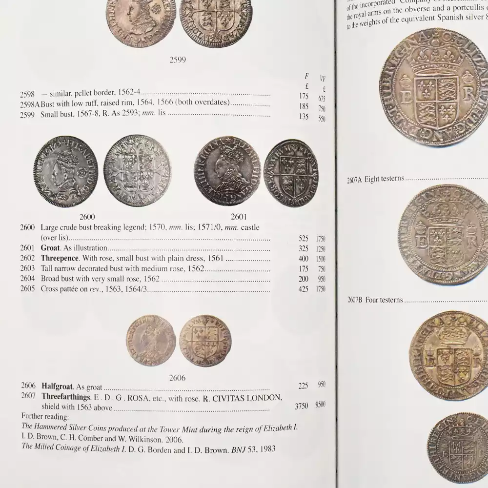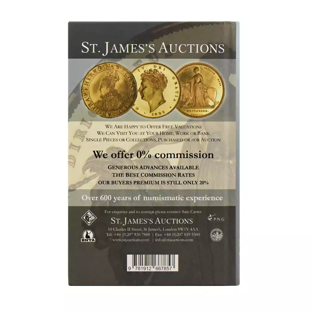 英国の首都ロンドン・ブルームズベリー地区を本拠として4カ国に支店を持つオークションハウス「スピンク」は、コインとメダルの競売と鑑定に特化する世界有数の企業として広く知られています。その創業は時の国王チャールズ2世が共和政を打倒し、王政復古を成就してから6年目の年に当たる1666年のことでした。以来、3世紀以上にわたり、英国をはじめとする世界中のコレクターのニーズを満たす希少価値の高いあらゆるジャンルの芸術品を取り扱い続けました。また19世紀以降には世界初の郵便切手「ペニーブラック」が発行されたことによって急速な発展を遂げた記念切手の取り扱いを開始し、この分野における社の名声を支えます。ヴィクトリア期の1850年代には陶磁器を始めとする東洋古美術の販売を開始し、英国におけるこの分野の草分けとしての地位を確立します。さらに1880年代には、当時存在していたロンドンのソーホー造幣局を傘下に収めたことから小規模ながらも独自のメダルの発行と新規のデザインの創造が可能となり、中世以来脈々と受け継がれていた英国貨幣の伝統を刷新するに至ります。1892年にはコインとメダルを扱う英国最古の機関紙「ニュミスマティック・サーキュラー」の刊行を開始しますが、これは2012年まで120年間継続され、定期的に発行されるコインとメダルのカタログとして高く評価されていました。コインとメダルに関する英国随一の権威として常に王室と密接に関わり続けてきたスピンク社ですが、1897年にはヴィクトリア女王のダイアモンドジュビリー(在位60周年記念)の一環として14種類もの特注メダルを発行し、女王の個人的な愛顧を受けるとともに王室との関係を一層深めます。これらの功績が考慮された結果、ヴィクトリア女王の治世後期の1900年に初めて英国王室御用達商人として認可され、現在もなお希少なメダルの取引を通じて現英国君主エリザベス2世の用命を拝しています。さらに近年においては王室所有の切手の管理を一任され、改めて王室御用達認証状を付与されました。王室との長きにわたる関連性は同社の運営を円滑にするのみならず、英国貨幣界全体における王室の権威を補佐する上でも必要不可欠であったと言えます。上記の実務的な運営とは別に、コインとメダルのための書籍の発行によって、これまでの同社の英国貨幣界における優位が確約されて来たことは言うまでもありません。とりわけ英国コインのための最もスタンダードなカタログとして世界的に知られているスピンク社の「Coins of England」と題する書籍は、コインとメダルのカタログとしての基本的機能のみならず、先史時代から現代に至る英国貨幣の変遷を網羅する参考資料としても重要であり、コレクションを形成する上で欠かせない収集家にとっての座右の書として珍重されているものです。ケルト時代からローマ帝国の支配下に発行された希少な古代コインに始まり、1971年に新貨幣法が施行される直前、1968年までの英国貨幣の精華を豊富な写真と共に640ページにわたって紹介する本書は、英国貨幣に関する第一級の資料として、また将来に向けて優れたコレクションの形成を目指す新しいコインコレクターにとっての指南書としての役割を果たすことでしょう。