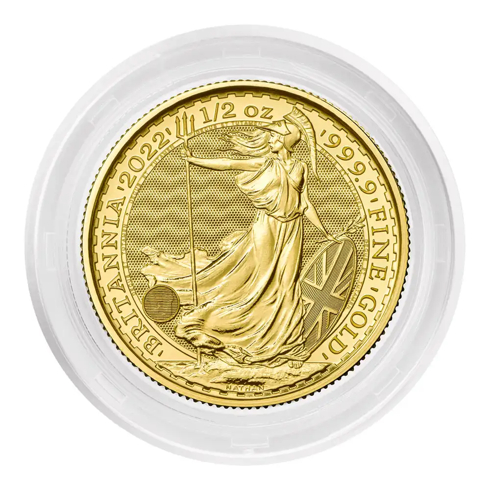 イギリス 2022 ブリタニア 50ポンド 1/2オンス 地金型金貨 【1枚】 (コインケース付き)