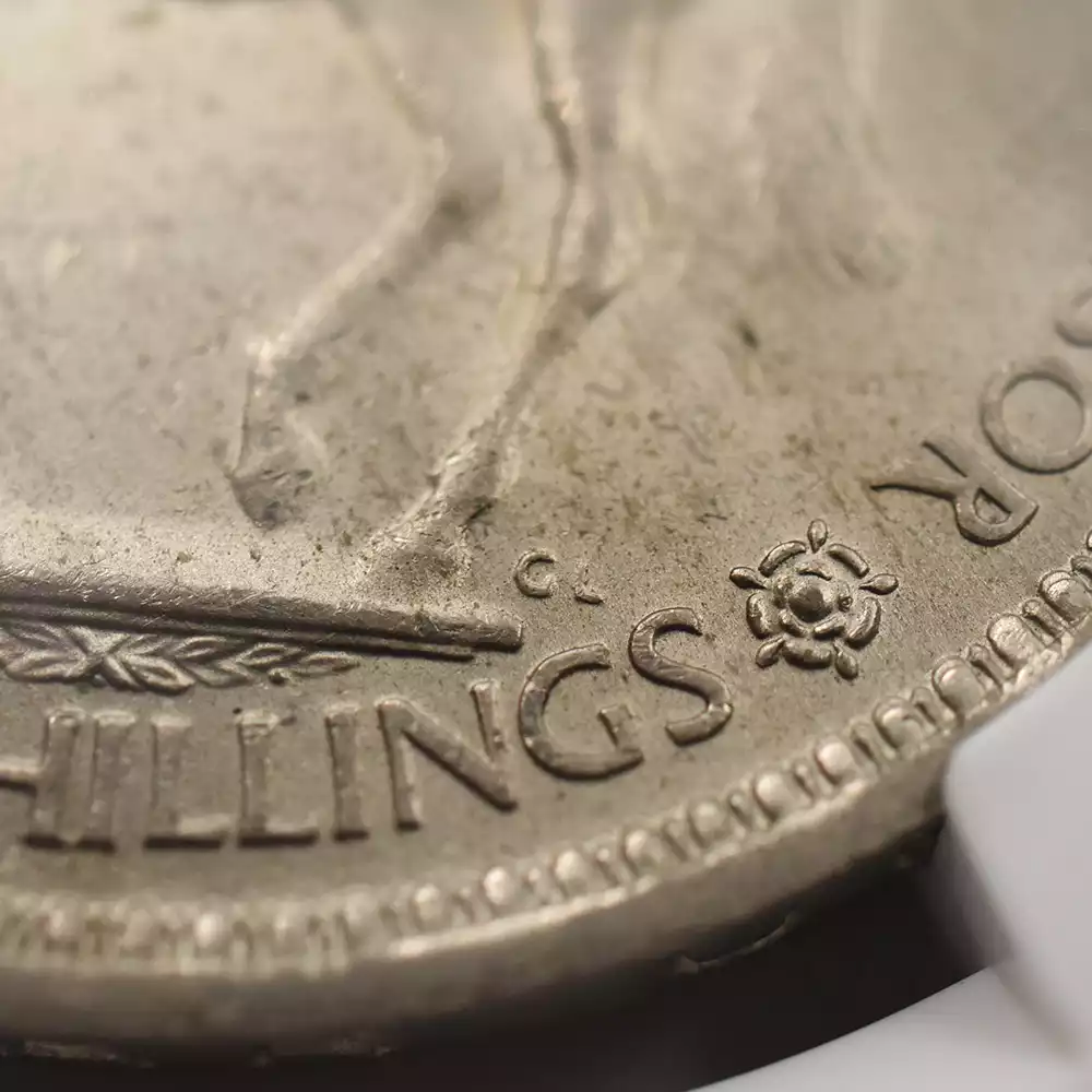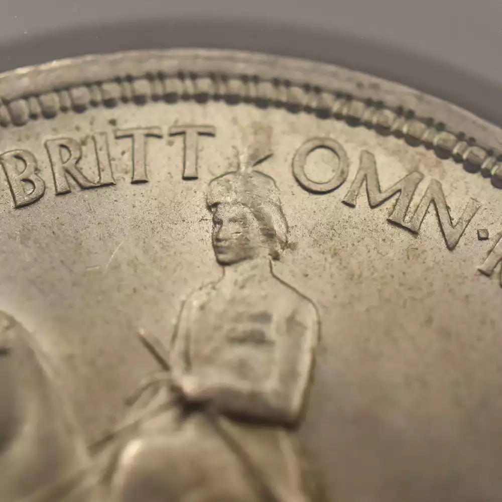 エリザベス2世の戴冠式の年、1953年にロイヤルミントが発行した記念貨のご紹介です。シルバーとはまた違った素材感を特徴とする白銅ですが、この戴冠記念貨ならではの優れたデザイン性と現代的な美しさを際立たせることに成功しています。コイン表面に描かれているのは乗馬姿のエリザベス2世像で、馬上の君主の威厳を表出する名演出が当クラウン白銅貨の絶対的評価の対象となっていることは一目瞭然です。女王の戴冠記念に発表されたこの新しいデザインは「馬上のエリザベス」の愛称によっても広く知られていますが、発行後もこれをモデルとして幾つかの歴史的な名貨の題材として度々取り挙げられてきました。中でも2002年発行の「エリザベス2世在位50周年記念貨」は英国モダンコインの白眉とされ、デザインの秀逸性と共に、21世紀に生きる実在の英国君主の貫禄を余すところなく再現した永遠の名作として誕生しました。その原型とも言える当クラウン白銅貨が戴冠式挙行の年に発行されたこともあり、女王の治世の始まりを告げる世紀のイベントを刻印すると共に、その後70年の歳月を経てヴィンテージコインとしての風格を徐々に醸し出し始めています。肖像の周囲には「神の恩寵による大英帝国女王エリザベス忠誠の守護者」と定型の厳かな碑文が掲げられており、女王の治世の始まりに祝意を添えているかの如くです。裏面のデザインには英国コインならではの象徴的な意匠が繰り広げられています。中央に見られる聖エドワード王冠を中心として、4つの盾形の紋章がバランスよく配置されています。連合王国三国、つまりイングランド、スコットランド、アイルランドのそれぞれの国章を描くそれらの盾の間には三国の国花である薔薇、アザミ、クローバーが紋章化された形状によって描かれており、観る者の眼を楽しませることでしょう。両面のデザインの秀逸性のみに目を奪われてしまいがちな当コインですが、実物資産として有益な希少性も特筆に値します。特に注目すべきはそのエッジ部分であり、そこには通常「エッジエラー」に分類される碑文のエラーが見られます。通常UとFの間にあるはずの十字が、なぜかOとUの間に刻まれているというエラーは、この作品を世紀の大珍品へと変貌させてしまいました。戴冠式当時の晴れ晴れとした空気の下に発行された当記念クラウン白銅貨は、式の主役であったエリザベス2世ゆかりの記念コインの最初期の一例として、今後数世紀に渡って脈々と受け継がれて行くことでしょう。そして何よりも20世紀後半から21世紀初頭にかけての英国の未曾有の繁栄を見届けた「現代のエリザベス朝」を象徴するヴィンテージコインとして、今後、一流のコレクションに相応しい優れた実物資産としての真価を十全に発揮することと思われます。