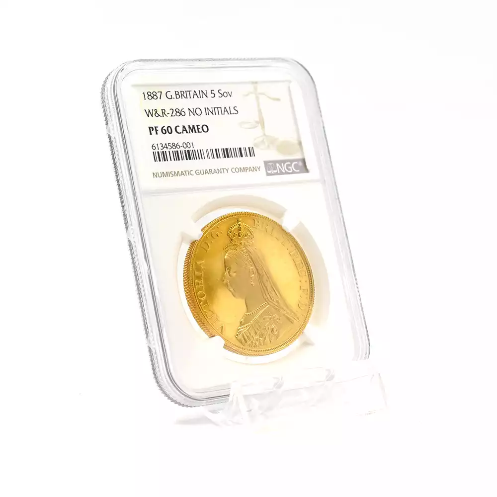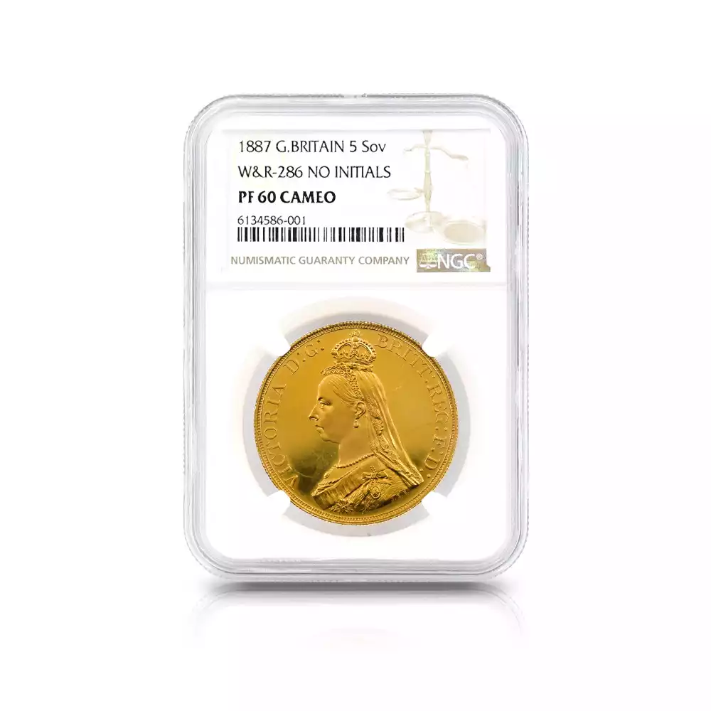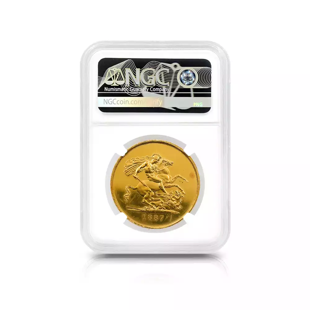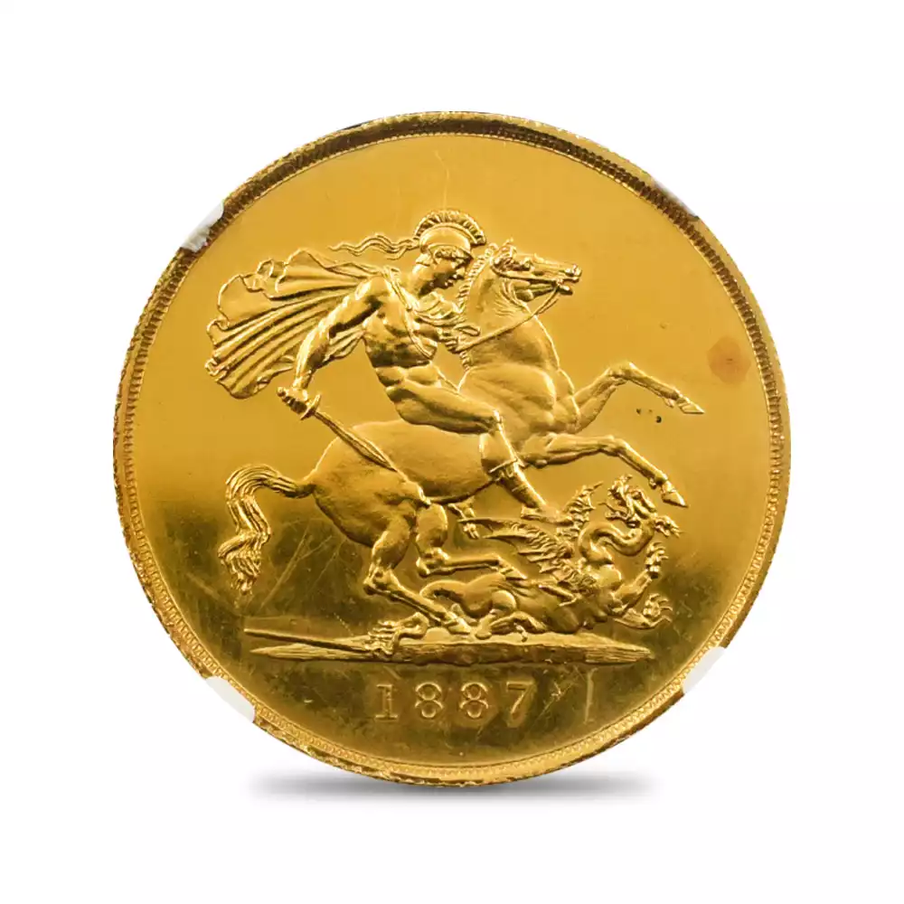 1887 ヴィクトリア女王 ジュビリーヘッド 聖ジョージ竜退治 5ソブリン金貨 NGC PF60CA W&R-286 NO INITIALS【R3】