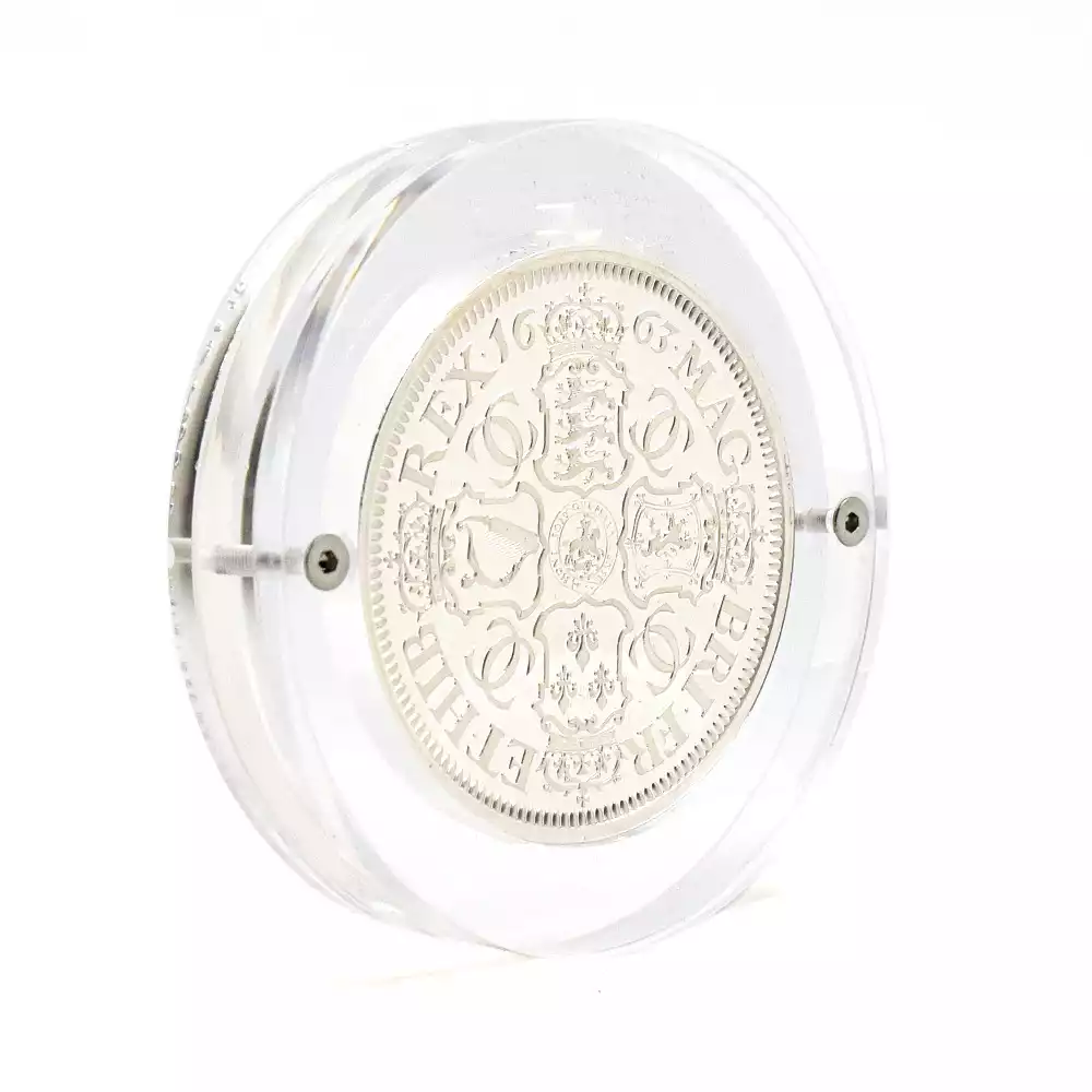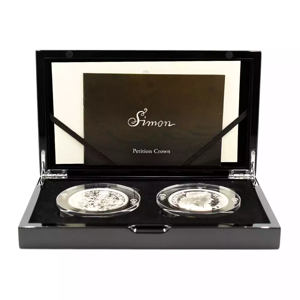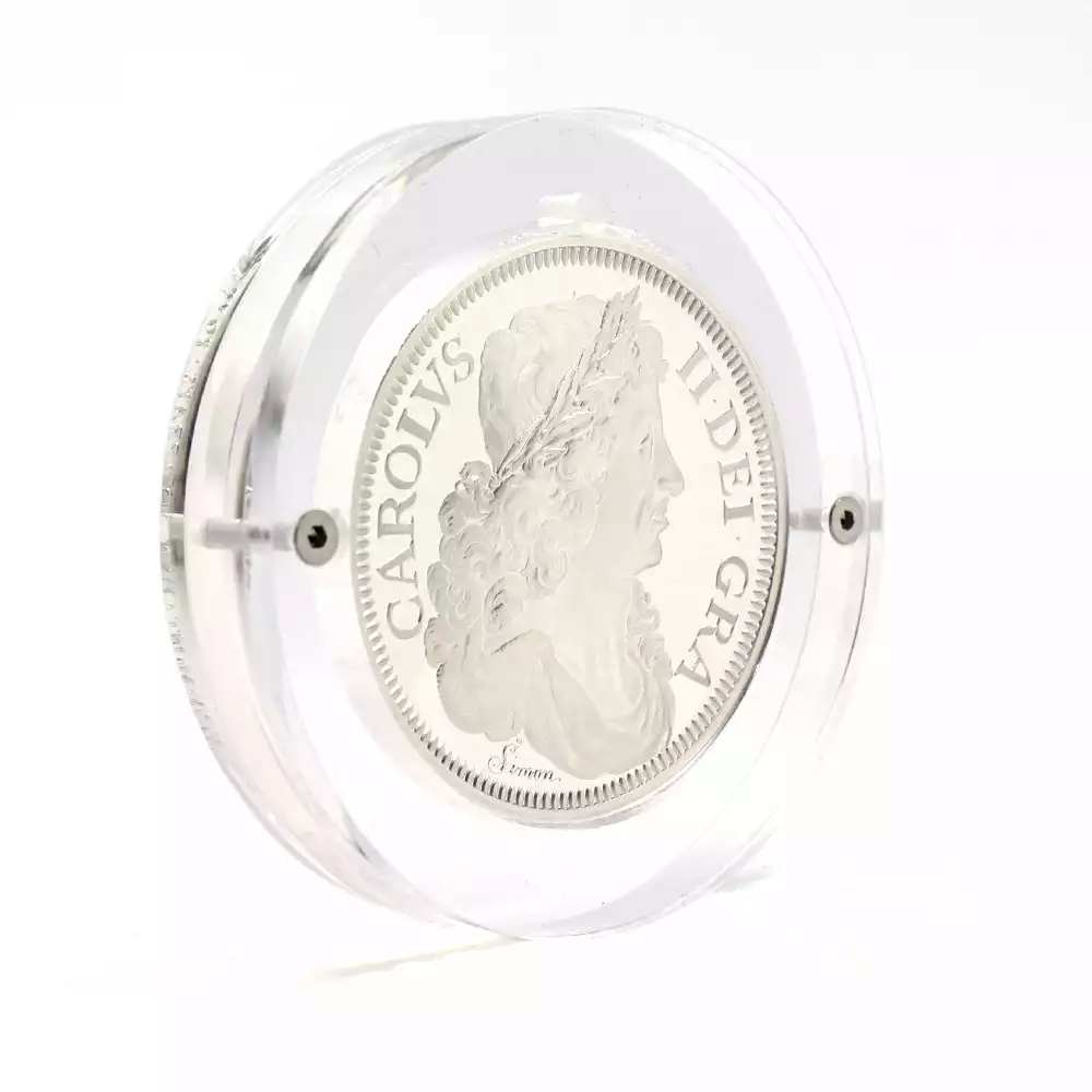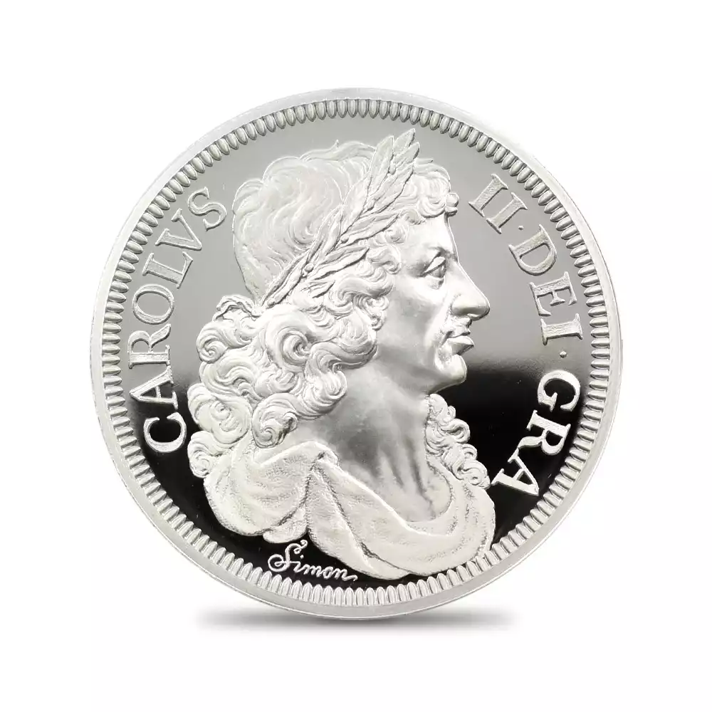 2019年の「ウナとライオン」の衝撃的なリリースによって、英国モダンコインの真価を世に知らしめた「グレート・エングレーバーズ・シリーズ=偉大なる彫刻家シリーズ」。その後、第2弾「スリーグレーセス」と第3弾「ゴチッククラウン」共に空前の成功を収め、英国コインの古典の魅力を全世界に発信しました。そして前作から約1年振りに満を持して発表されることになったのが今回の第4弾「ペティションクラウン」です。オリバー・クロムウェルが創始した共和政を打倒した王太子時代のチャールズ2世は、1660年に王政復古を宣言し、遂に英国王位を我がものとします。国王の即位の3年後の1663年に発行されたのが、17世紀の英国を代表する名貨の一つとして知られる「ペティションクラウン」のオリジナルです。過去にヴィクトリア期の名匠ウィリアム・ワイオンの3作品を取り挙げた「偉大なる彫刻家シリーズ」でしたが、今回はワイオンの生きた時代から遡ること約150年前の伝説の名彫刻家、トマス・サイモンの最高傑作と彼の生きたステュアート朝の激動の時代に焦点を当てます。ステュアート朝のチャールズ1世の治世下において初めて頭角を現したサイモンは、その後、オリバー・クロムウェルの共和政下に於いても主要なコインのデザインを任され、少なくとも王政復古までには名実ともに英国貨幣界の大家としての地位を確立していました。しかし新たに英国を率いることとなった国王チャールズ2世は、自らの治世の最初期を飾るクラウン貨のデザインを、英国を代表する名人として既に名を馳せていたサイモンに委ねる代わりに、オランダ出身の新進気鋭のコイン彫刻家ジョンとジョセフ・ローティアー兄弟に任せようと考えていました。最終的には、どちらかより優れた出来栄えを見せるほうが選定されるという条件の下に両者は技を競い合うことになります。結果的には熟練の技を誇るサイモンの作品と比して、オランダ人兄弟の作品は完成度の点においてサイモンの足元にも及ばなかったため、サイモンの作品が優先的に採用されることになります。その熾烈な競争の果てに生き残った作品こそが、「ペティションクラウン」の通称によって現在我々が知るところの17世紀を代表するこの大傑作に他なりません。