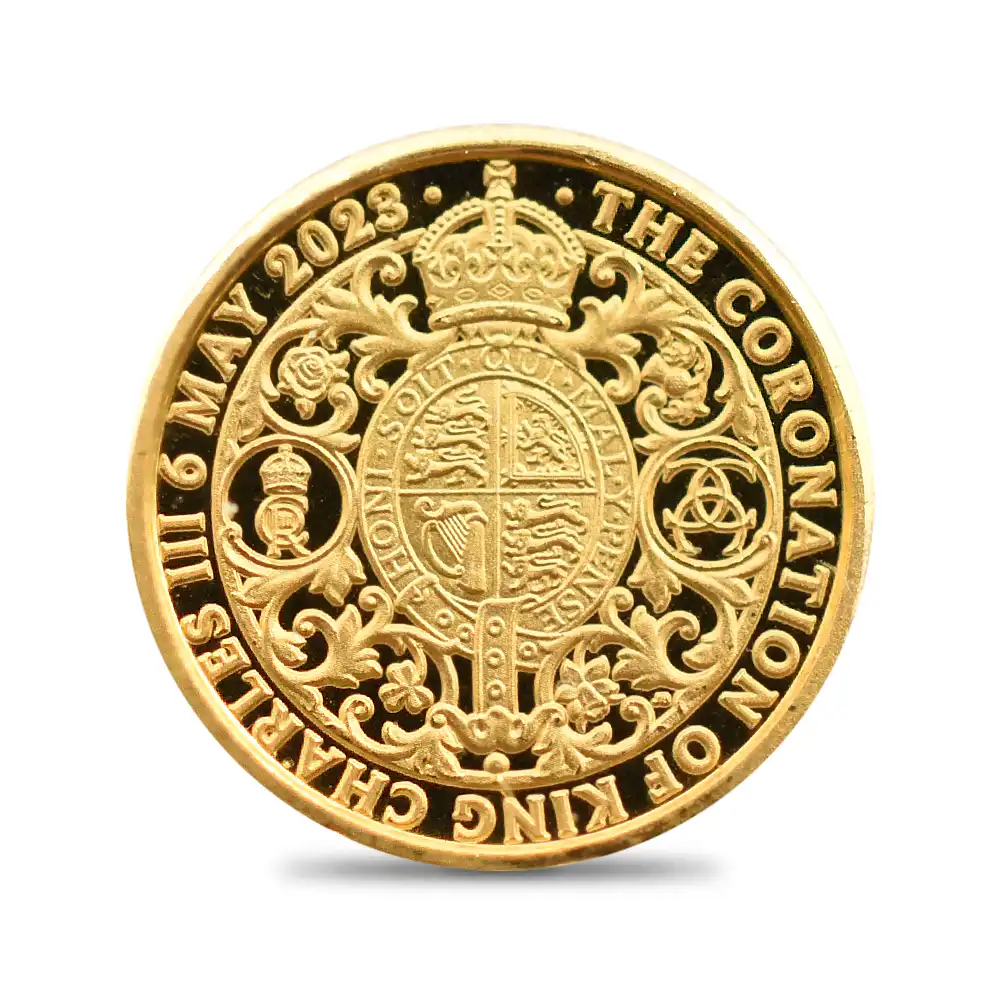 昨年の即位に続いて、この度、無事開催されたチャールズ3世の戴冠式ですが、その偉容を恒久化する一枚の美しいモダンコインの満を持しての登場となりました。当戴冠記念貨は、21世紀初の即位となる新英国王チャールズ3世とカミラ王妃による新たな時代の幕開けを象徴するアニバーサリーコインの秀作です。コイン表面には新国王の有冠左向きの肖像が描かれています。昨年9月の国王の即位以降にリリースされた一連のコイン上のポートレートは王冠なしのタイプが主流でしたが、当戴冠記念貨では英国王位の象徴である「聖エドワード王冠」が国王の頭上を飾っています。国王自身もお気に入りとの評判の高いこのポートレートは、現代ロイヤルミント屈指の名コイン・デザイナー、マーティン・ジェニングスの美意識が光る写実性豊かな名作です。ジェニングス氏の手によって、ここに戴冠式を記念する特別版コイン・ポートレートが日の目を見ることになりました。その周囲には「神の恩寵によるチャールズ3世・忠誠の守護者」と荘重なラテン語の定型碑文が続きますが、注目すべきは王名のチャールズの部分で、通常のラテン語によるCAROLUSではなく英語でCHARLESと表記されている点が当戴冠記念貨ならではの特徴として挙げられます。裏面中央には英国王室が授与する至高の褒賞「ガーター勲章」の徽章を模した四分割された盾が掲げられており、さらにその中にはイギリス連合王国三国の国章が整然と配置されています。盾の周囲のベルトにはガーター勲章の標語である「我に悪意を抱く者に報いあり」の古典的銘文が刻まれています。その外周には装飾的なフラワースクロール、新国王のロイヤルサイファと王名のイニシャルを模したモノグラムが配され、さらに上部には英国王位の象徴である大型の宝冠が鎮座しています。周囲には「国王チャールズ3世の戴冠式」の一文と共に戴冠式挙行の日時が厳かに刻まれており、歴史的な一日の感動を締めくくっています。この一世一代の祝祭を効果的にバランスよく意匠化し、コイン上にて恒久化することが今、現実のものとなったことは、英国貨幣史上の快挙であると言っても過言ではないことと思われます。