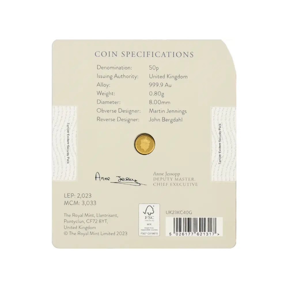 2023 チャールズ3世 戴冠記念 50ペンス1/40オンスプルーフ金貨 未鑑定 ブリスターパック付き