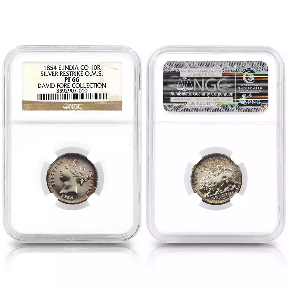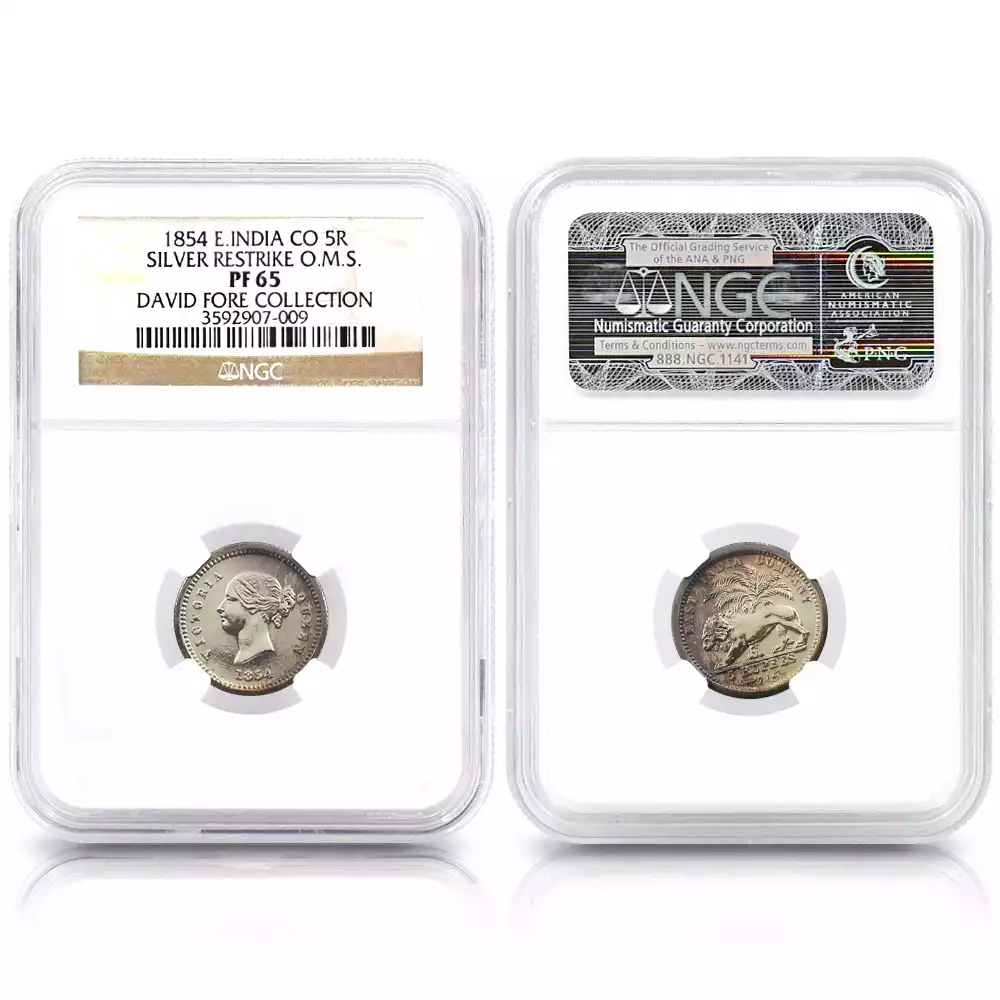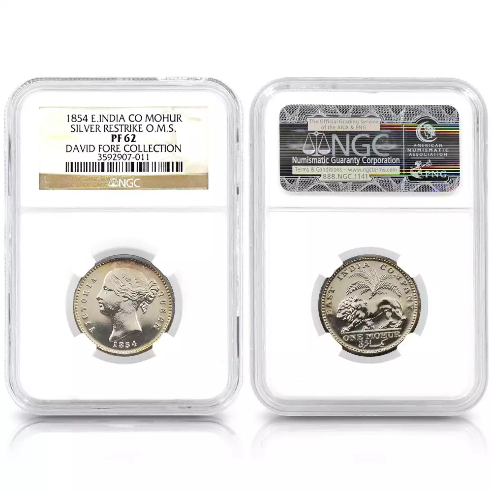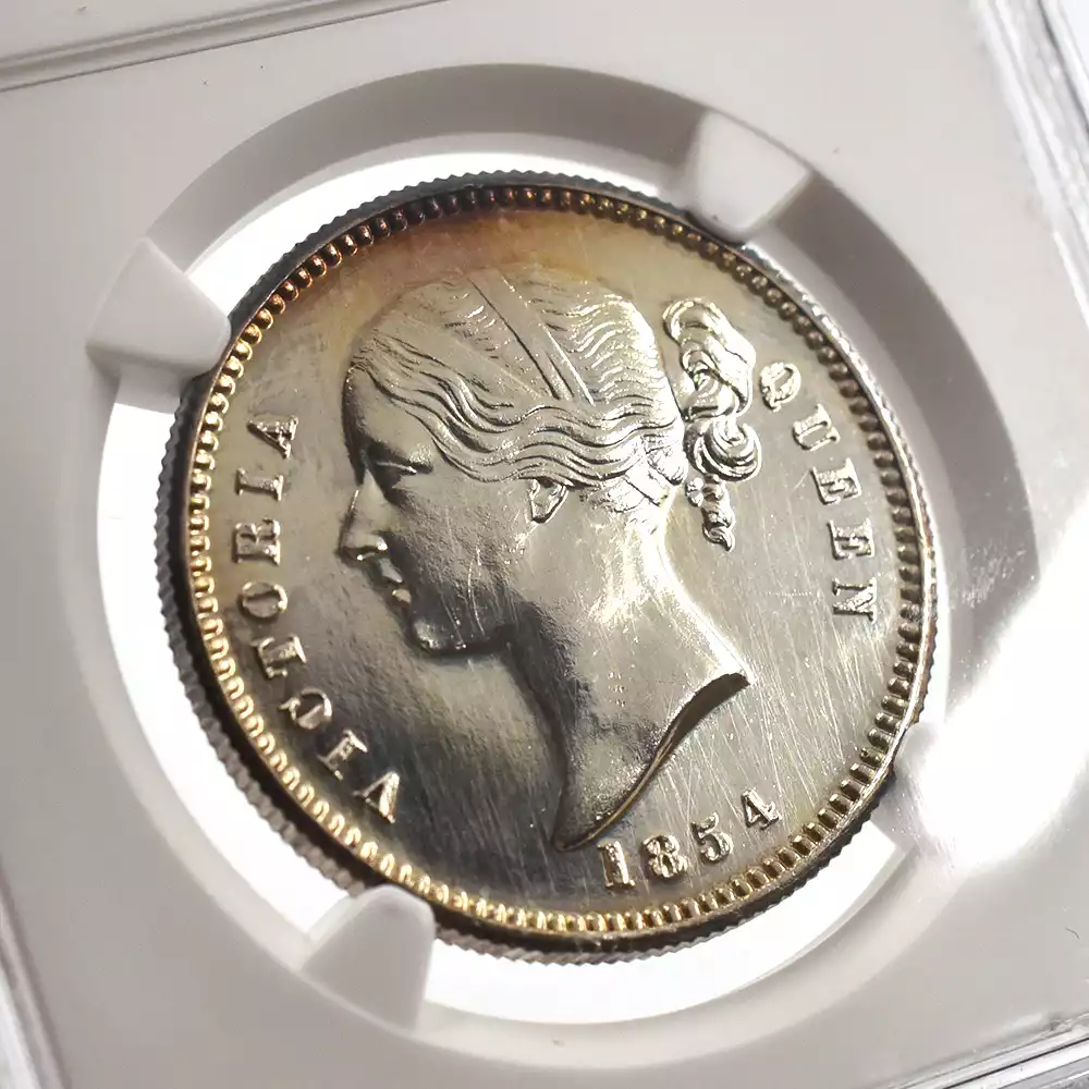 東インド会社 1854 ヴィクトリア女王 2モハール・モハール・10ルピー・5ルピー銀貨4枚セット リストライク NGC PF62-66