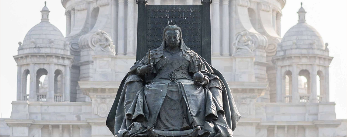 ©インド コルカタにあるヴィクトリア記念堂 1861年に夫アルバート公爵の薨去という不運に見舞われ、意気消沈していた女王の服喪期間は予想に反して長く、国民の批判の対象となりつつありました。議会の度重なる説得によって、女王がやっと君主としての務めを果たせるようになったのはそれから約10年後のことでした。しかしそれらの年月において英国は決して眠っていた訳ではなく、むしろ全世界の覇権を虎視眈々と狙っていたといえます。1870年代初頭の議会の開会式への出席を皮切りに女王は公務に復帰し、完全復活を強く印象付けることに成功しました。そしてその後、英国議会の承認によってインド女帝位を推戴され、名実ともに大英帝国の宗主としての強大なる権威を獲得することになります。