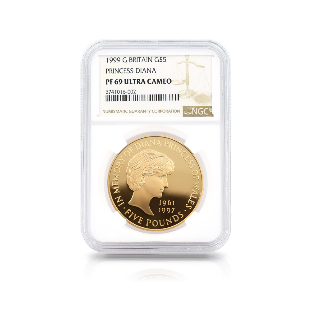 1999 エリザベス2世 ダイアナ妃追悼記念 5ポンド金貨 NGC PF69UC