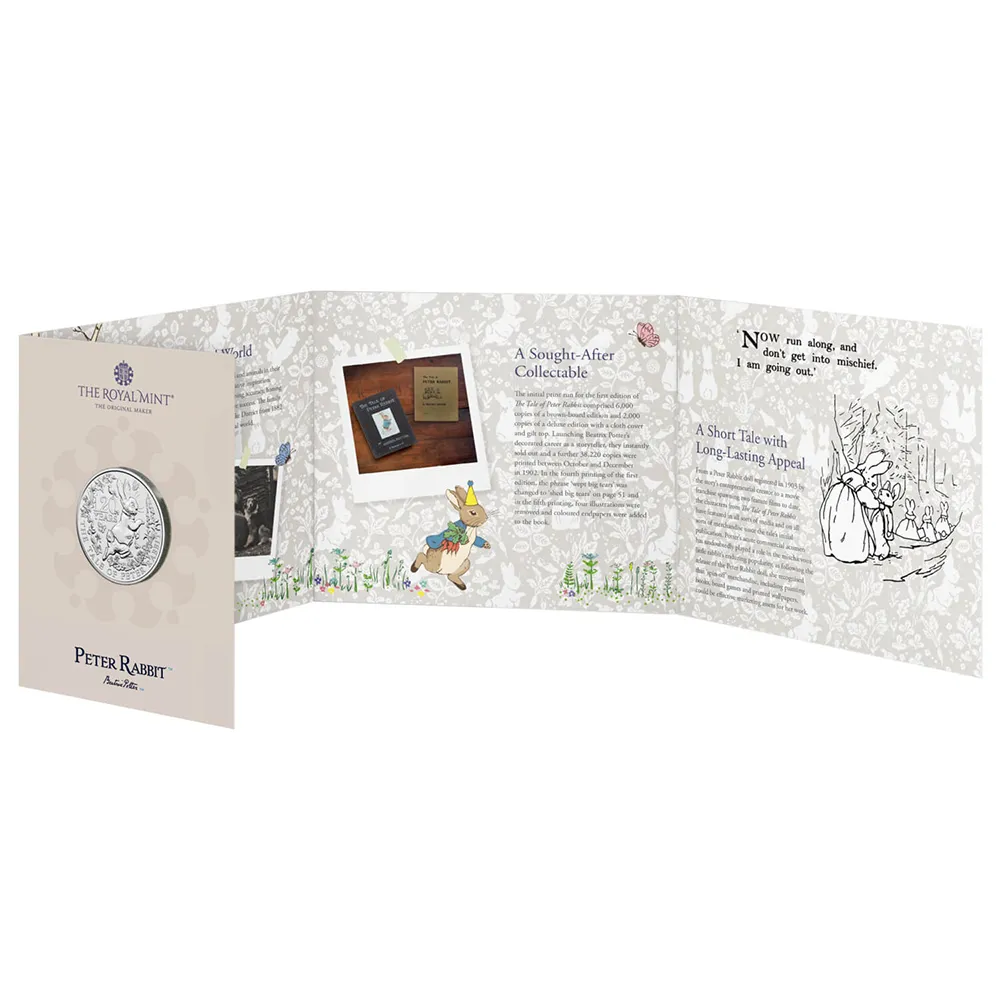 1902年に作者のビアトリクス・ポターによりピーターラビットの物語が生まれてから120年の時を経た2022年、このいたずら好きでお茶目なうさぎ、ピーターラビットがコインの裏面に戻って来ました。うさぎのピーターが絵本を飛び出し、私たちの元にやって来ました。世界の多くの国々で親しまれているピーターラビットと彼の家族の物語ですが、日本ではすでに明治時代に「ぴたろうさぎ」として翻訳出版され、人気を集めていたことは注目に価します。