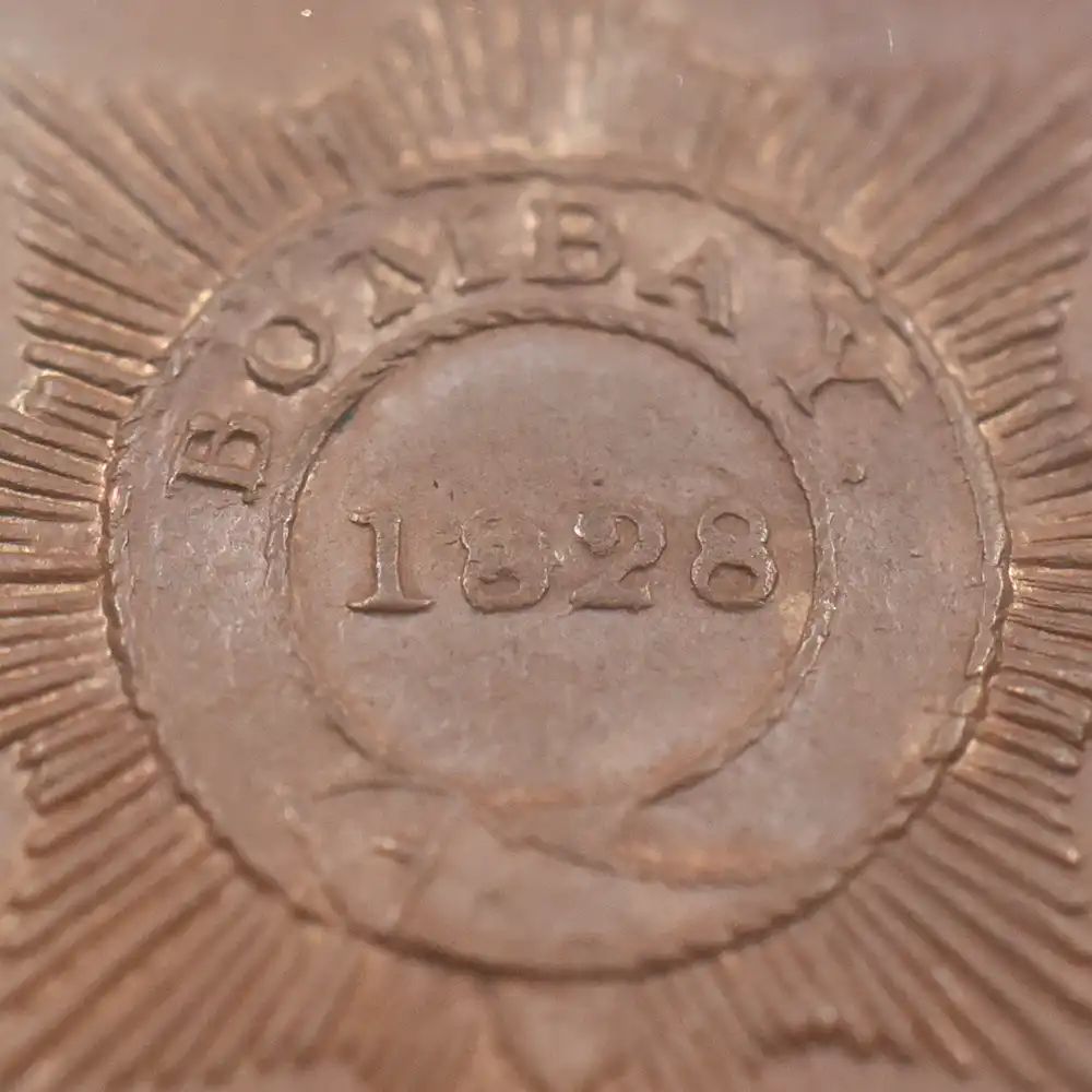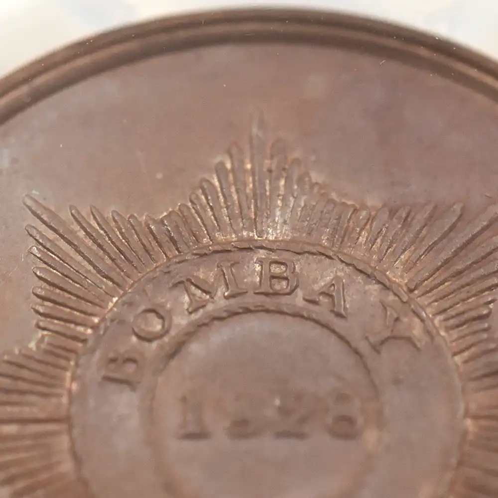 ジョージ4世の治世後半にインドのボンベイで発行された博物学的な価値を持つモハール銅貨。