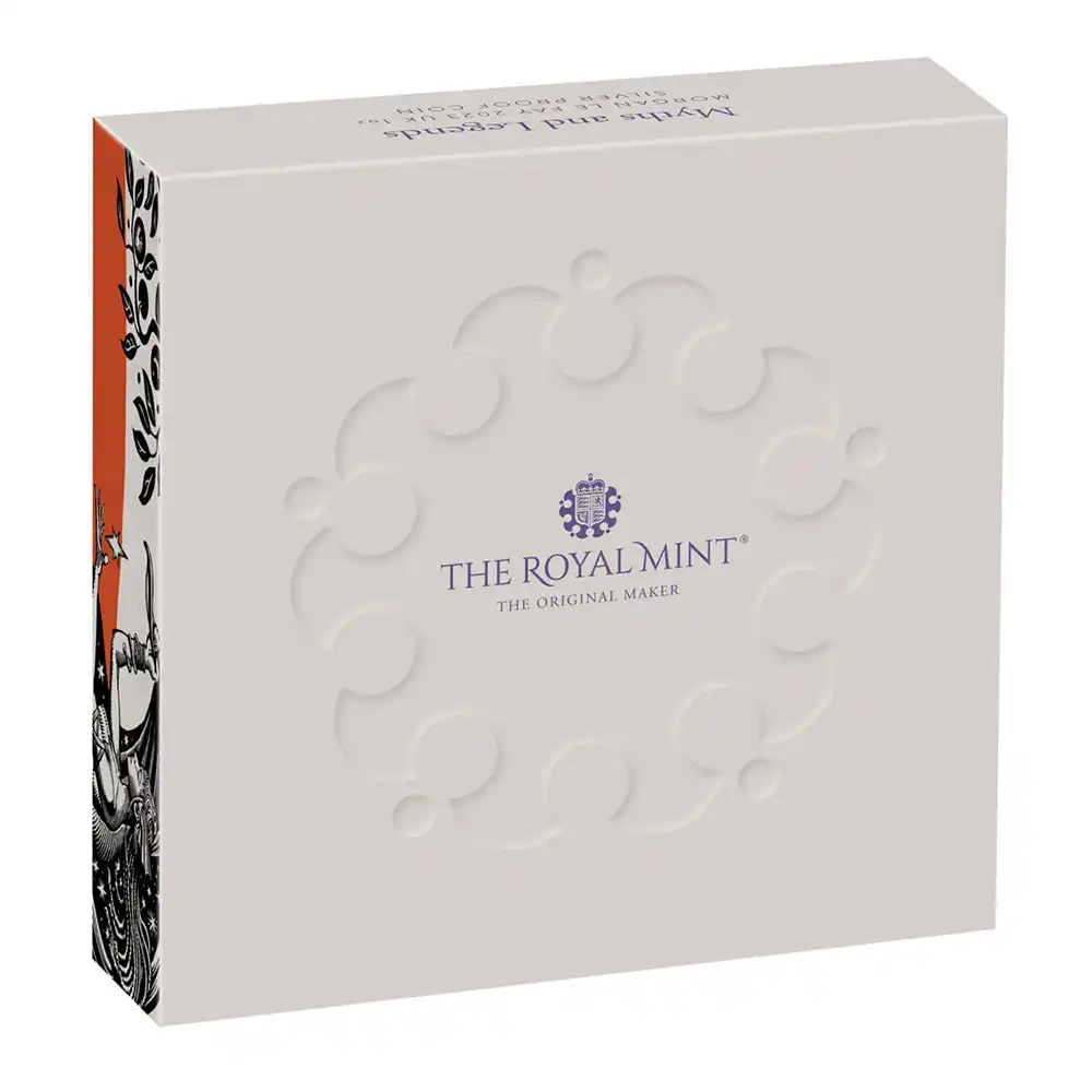 ロイヤルミントが生み出した新コインシリーズ「神話と伝説」は、瞬く間にモダンコイン屈指の人気コレクションとしての地位を確立しました。この度、発表となった第3弾では、アーサー王の物語の主要な登場人物として知られるモーガン・ル・フェイが裏面を飾ります。古代ケルト語で「大いなる女王」を意味するケルト神話の女神「モリガン」と同一視されるモーガン・ル・フェイの呼称は「妖精モルガン」という意味になり、古くは「モルガン・ル・フェ」と発音されていたとのことです。多くの作中においてはアーサー王の異父姉として、また時には妖術を駆使する魔女として描写されることもあります。古代ケルトでは三相一体の三は聖なる数字と見なされ、三がさらに三つある九は至高の数字と見なされていたことから、モルガン・ル・フェイを九姉妹の長女として扱っていました。古来イタリアではモーガン・ル・フェイのことを「ファタ・モルガーナ」と称し、時折メッシーナ海峡に出没し、蜃気楼を漂わせて船乗りを誘惑し、船を座礁させてしまうという怪奇伝説が残されています。カムランの戦いで負傷したアーサー王をブリトン人らの助力によって避難させ、金のベッドに横たえてその魔術によって治癒したと伝えられています。この度解禁となった同シリーズ第3弾の裏面には、ドラゴンの両翼のような頭部を持つ魔性の女モーガン・ル・フェイが情感豊かに描かれています。挑発的なポーズをとる彼女ですが、その躍動感溢れる見事な描写は、当コインシリーズの最終章としての貫禄を十分に感じさせるものです。この優れたポートレートからは、現代ロイヤルミントが世界に誇る個性豊かなデザイナー、デヴィッド・ローレンスの才気漲る描写力のみが可能とする強い呪縛力を感じ取ることができます。そしてコイン裏面には、今やロイヤルミントを代表するデザイナーといっても過言では無い芸術性豊かなマーティン・ジェニングスの手による新国王チャールズ3世の肖像が掲げられています。国王自身の個人的な推挙を得て起用されることになったこの秀逸なポートレートは、ありのままの国王の素顔を写実性豊かに再現し、現代屈指の名作としての地位を確立しました。驚異的な描写力によって妖艶なモーガン・ル・フェイを裏面に再現する当コインのリリースは、英国人の心の拠り所でもあるアーサー王にまつわる伝説をコイン上に永遠に刻む名プロジェクトとして、長きにわたって記憶されることでしょう。