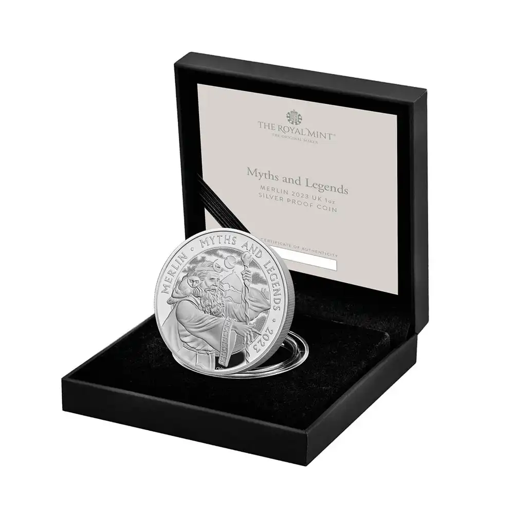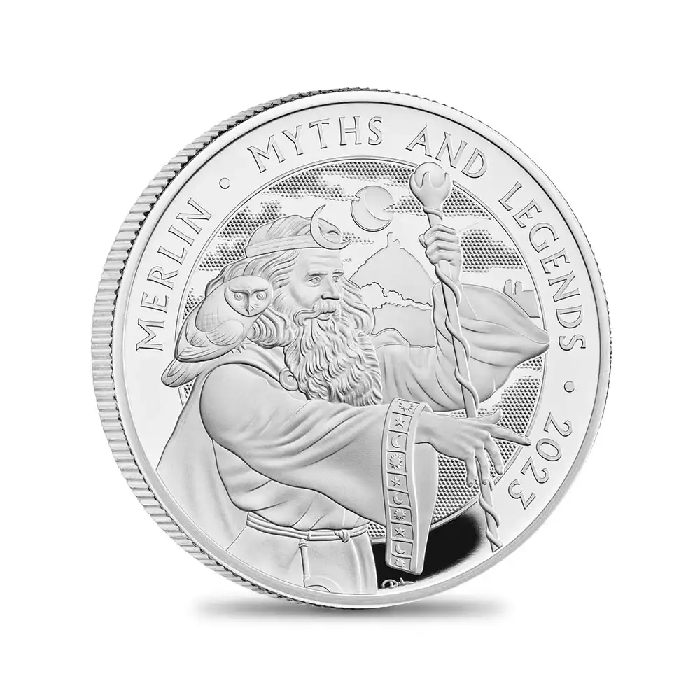 2023 チャールズ3世 神話と伝説シリーズ第2弾 マーリン 2ポンド1オンスプルーフ銀貨 未鑑定 箱付き【ご予約承り品】