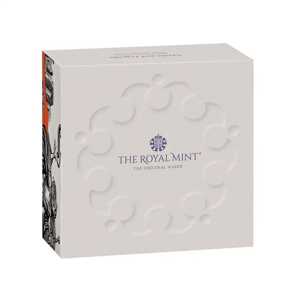 今回は、新コインシリーズ「神話と伝説」の第2弾として英国ロイヤルミントがリリースした「マーリン」をご紹介させていただきます。アーサー王の伝説との繋がりを持つマーリンは、元々12世紀の歴史書「ブリタニア列王伝」に魔術師として登場していました。王の父でブリテン王のユーサー・ペンドラゴンを導き、有名かつ謎の石碑群「ストーンヘンジ」を建築した人物として同書に描かれていました。その後の文学作品ではユーサーの子のアーサー王の助言者としても描写されるようになります。アーサー王の伝説の主要な登場人物としては比較的後期の創作であるマーリンですが、15世紀テューダー朝の始祖ヘンリー7世がマーリンの予言を元に自身を「予言の子」「赤い竜の血を引くウェールズ王」と位置付けたため再び注目され、グレートブリテンを代表する典型的な魔術師と見なされるようになりました。ラテン語で著された「ブリタニア列王伝」では、「アンブロシウス・メルリヌス」というラテン語名で紹介されていますが、これを英語読みしますと「アンブローズ・マーリン」となります。当コイン裏面には、肩に叡智の象徴であるフクロウを従え、片手に賢者の象徴とされる杖を持つ老人の風貌を湛えたマーリンの姿が描かれています。そしてコイン表面には、2022年9月8日のエリザベス2世の崩御に伴い、74歳の高齢にて英国王位を我がものとした新国王チャールズ3世の左向きの肖像が見られます。現代ロイヤルミントを代表する名匠マーティン・ジェニングスの多彩な表現力が創造したこの厳選された作品は、現時点における英国コインポートレートのスタンダードな傑作として、人間チャールズ3世の真摯な姿をコイン上に投映しています。アーサー王の人気は今日国境を超えていると断言できます。その文化的影響力は時が経つほどに増大しており、現代における王の人気は過去の伝説上の王の存在感を遥かに上回っていると言えます。ロイヤルミントの英断によって創始されたこの「神話と伝説シリーズ」の第2弾に当たる当コインは、重要な脇役であるマーリンを裏面に描くことによって、アーサー王の神格化された存在感をより鮮明に再現することに成功しています。