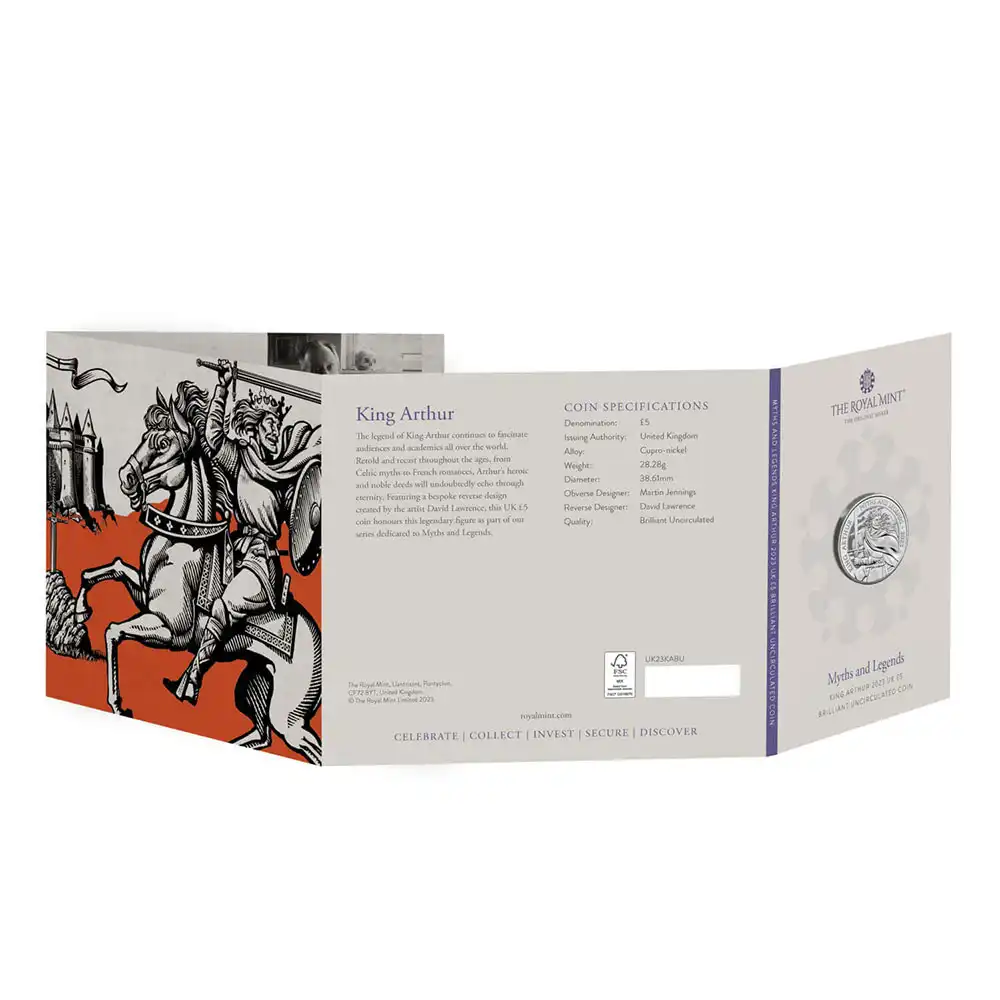 2023 チャールズ3世 神話と伝説シリーズ第1弾 アーサー王 5ポンド BU白銅貨 未鑑定 パッケージ付き【ご予約承り品】