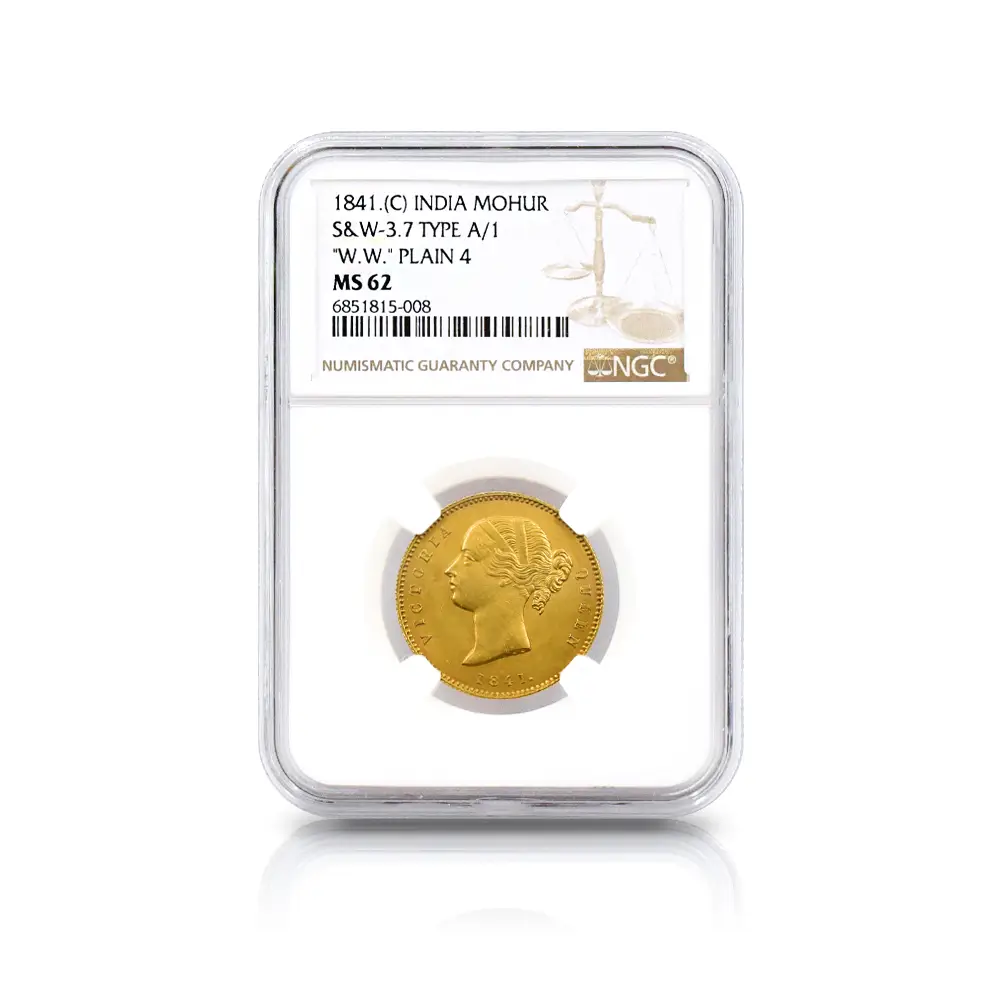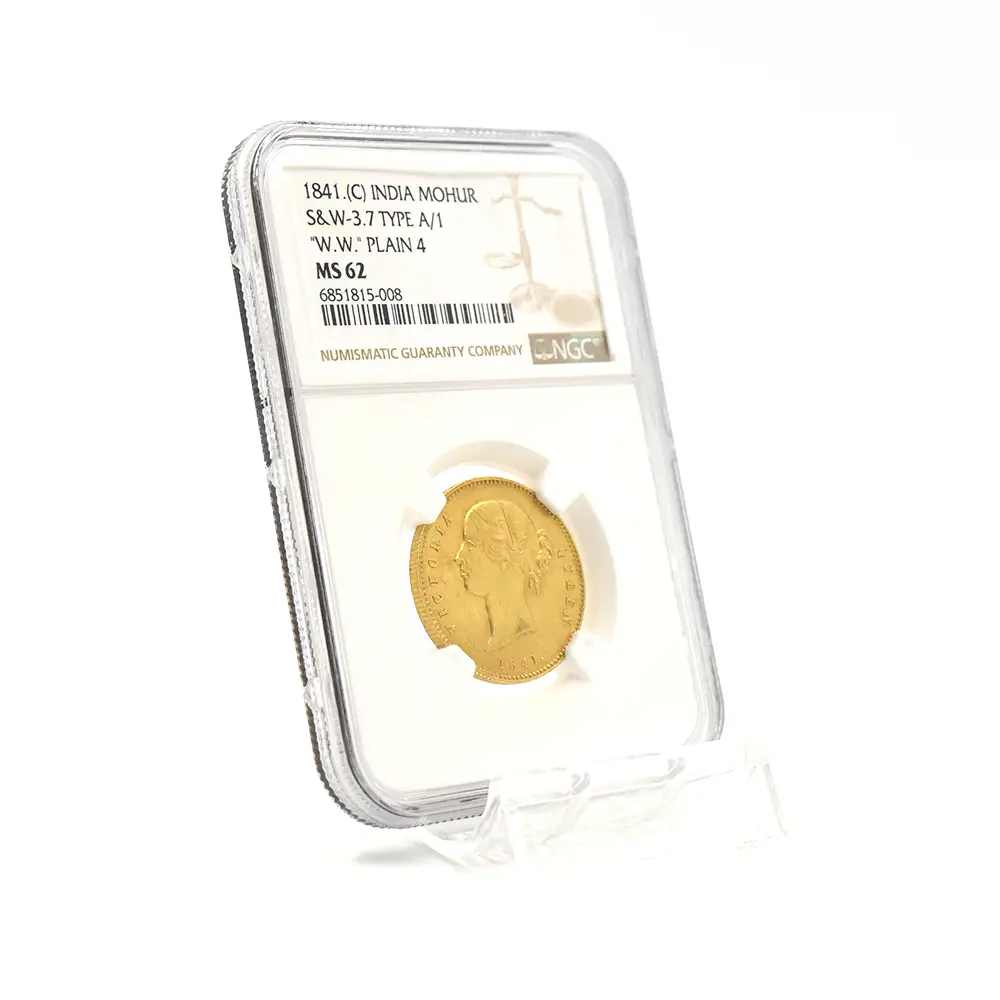 英領インド 1841C ヴィクトリア女王 モハール金貨 NGC MS62 S&W-3.7 TYPE A/1