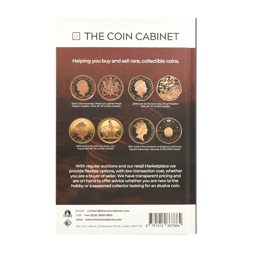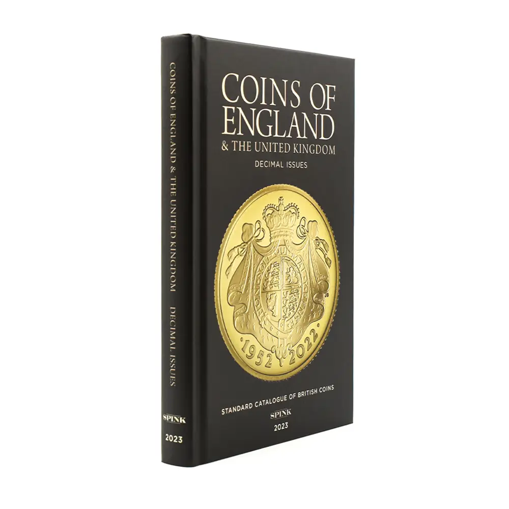共和政イングランドを打倒し、王政を復活させた偉大なる帝王チャールズ2世の治世の幕開けから6年目に当たる1666年を創業年とする英国の老舗スピンク社は、過去350年以上もの長大なる年月を各種アンティークの売買に捧げてきた英国古美術界の守護神のような存在です。あらゆるジャンルのアンティークを取り扱うスピンク社ですが、とりわけ同社のコイン・メダル部門は、これまでに英国貨幣の精髄を世に知らしめる重要な役割を果たしてきたことで知られており、上流階級人士の愛顧を得て、同社を英国を代表する古美術商へと昇格させました。英国王室のお膝元であるロンドンに居を構え、国際的にも注目度の高いオークションの開催によって活況を呈している現在のスピンク社ですが、近年、コイン関連の各種書籍の出版にも力を入れていますが、それらを通じて同社の英国コインに対する飽くなき情熱と好奇心の片鱗を窺うことができます。英国貨幣のバイブルとして、コインマニアを始め、世のあらゆるコイン関係者必須の書として重用されている「Coins of England・Decimal Issues」は、この度の2023年度版で第9版を迎えました。版を重ねるごとに充実した内容を披露してきた当書ですが、2023年度版においては、コンパクトでありながらも豊富な情報量を特徴とする当書の長所をより明確に見出すことが可能です。1952年のエリザベス2世の即位は、英国貨幣史にも大きな影響を及ぼしました。特に1971年に英国貨幣界が導入した十進法はモダンコインの新たな方向性を示唆し、今日我々がそれらのコインを深く理解する上でのある種のスタンダードを構築したことは確かです。本書は、この十進法の導入以降に発行されたモダンコインのみを取り扱っており、それに特化する英語で著された書籍としては最も含蓄の深いかけがえのない一冊です。読者の利便性に配慮した目次は非常に分かり易く、あらゆるモダンコインを各テーマごとに正確に分類しています。また、シリーズ化されたモダンコインの傑作群の紹介にも尽力しており、目次にそれらのコインの略号が列挙されていることから、本文の理解には非常に役立ちます。2022年9月8日のエリザベス2世の崩御は、英国貨幣界にも多大なる影響を及ぼしました。当第9版の最終校訂が繰り返されている間に女王の訃報が世界を駆け抜けましたが、それは今から思えば新国王チャールズ3世即位の瞬間であると同時に、モダンコインにとっての変革の時でもありました。この最新版には若干ではあるものの、新国王の「第一公式コイン肖像」を掲げる各種新作コインも掲載されており、英国モダンコインにとっての新時代の到来を強く印象付けています。かつて無い程に多彩なラインアップに支えられるようになったモダンコイン界ですが、当書はそれらのコインの詳細を理解するための座右の書として、コインマニアを始めとするコイン関係者の必要性に益するものであるに違いありません。