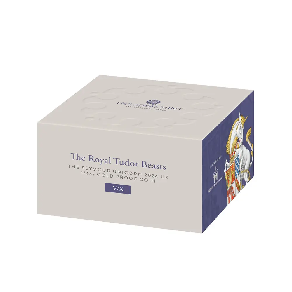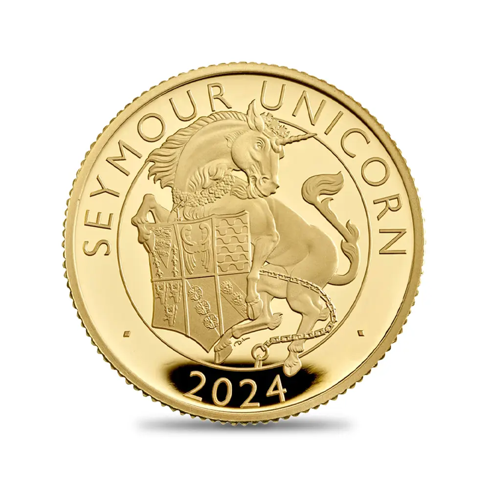 2024 チャールズ3世 ロイヤルテューダービースト シーモアのユニコーン 25ポンド1/4オンスプルーフ金貨 未鑑定 箱付き【ご予約承り品】
