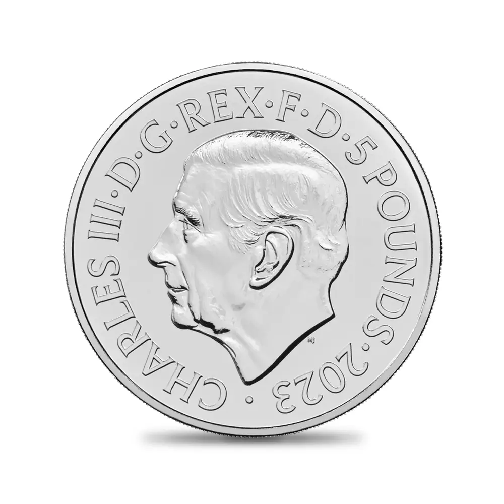 過去にも映画版「007」関連のコインを発表して好評を博したロイヤルミントですが、今回ご紹介させていただく待望の新作は再びこの世紀の傑作映画シリーズに捧げられることとなりました。今回の作品においてまず特筆すべき点として挙げられるのが、裏面のデザインであることは衆目の一致するところでしょう。1967年公開の同映画シリーズの第5作「007は二度死ぬ」の名場面を取り入れた裏面デザインの中央部には、天空を飛翔するボンドの秘密兵器「リトル・ネリー」が描かれています。やはり名優ショーン・コネリーの眩しい程の名演技が思い起こされ、感動もひとしおです。さらにその下部には1960年代に用いられていたスタイリッシュな字体を特徴とする同映画タイトルのロゴが挿入されています。この裏面の懐かしいデザインのみでも映画ファンを興奮させるであろうことは想像に難くなく、数々の名作を生みだした同映画シリーズの原点を回顧する貴重な機会を我々に与えています。そしてコイン表面には、2022年9月8日に崩御されたエリザベス2世に代わって英国を率いることとなった新英国王チャールズ3世の「公式第1肖像」が描かれています。ロイヤルミントの名匠マーティン・ジェニングスのフォトジェニックな表現力は国王自身もお気に入りとのことで、コインのために創造された肖像としては間違いなく最高傑作の部類に入るものと思われます。ボンド映画の創生期に青年時代を送られたチャールズ国王もきっとそれらの殆どをごらんになり、高く評価されていることでしょう。古き良き英国の一時代を象徴する傑作映画シリーズを描く新たなモダンコインの素晴らしさをご堪能ください。