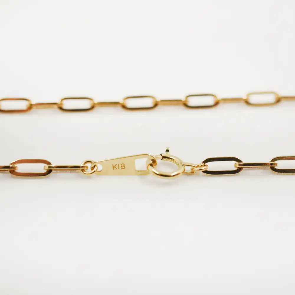 ネックレス チェーン ゴールド ペーパークリップ K18 (18金) 全長約42cm クリップ1コマ 約7×33mm 厚さ0.65mm 重量 約3.5g K18刻印入り