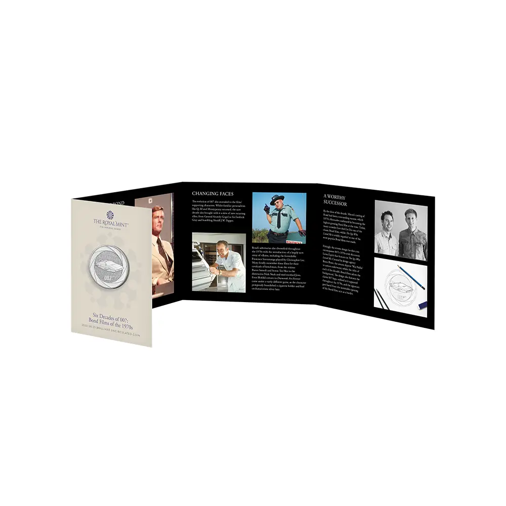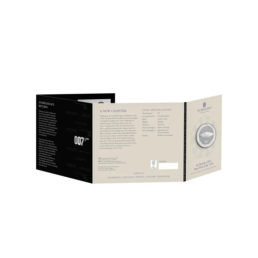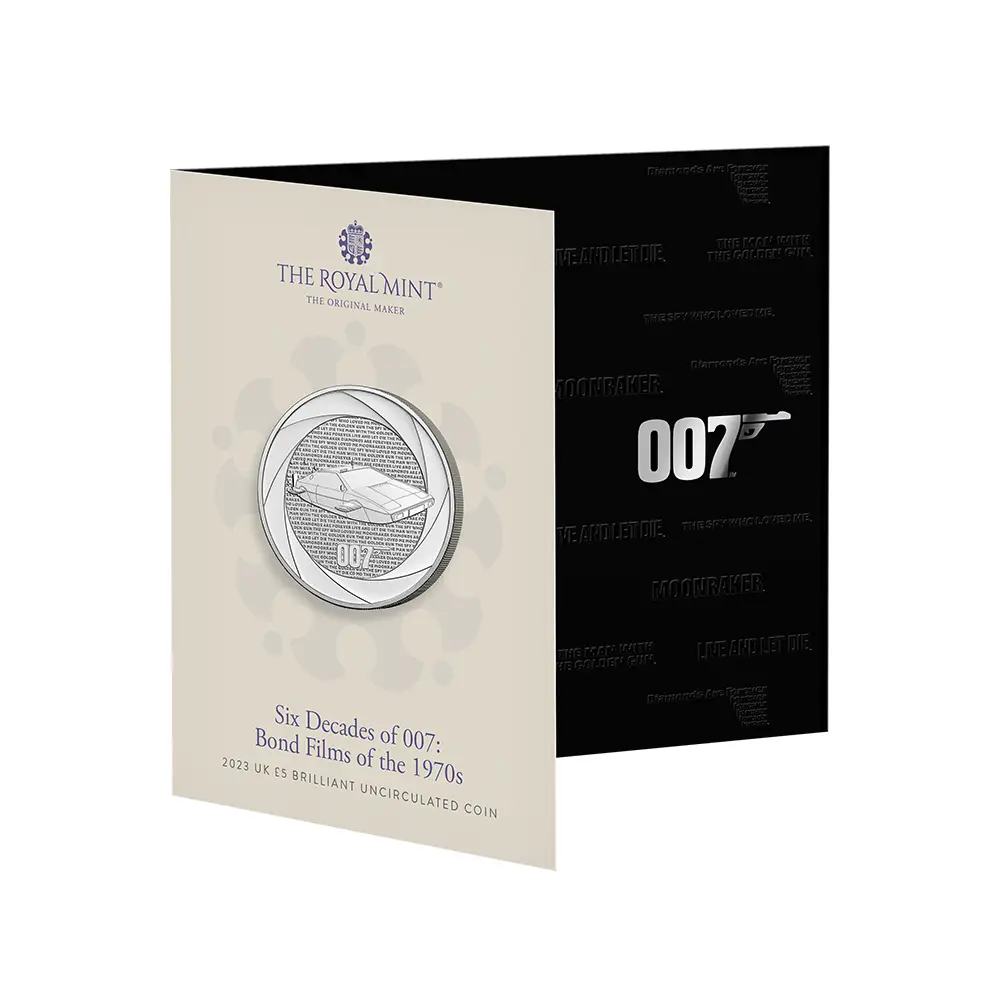 2023 チャールズ3世 「007の60年」ボンド映画記念シリーズ第2弾 「1970年代」 5ポンドBU白銅貨 未鑑定 パッケージ付き【ご予約承り品】