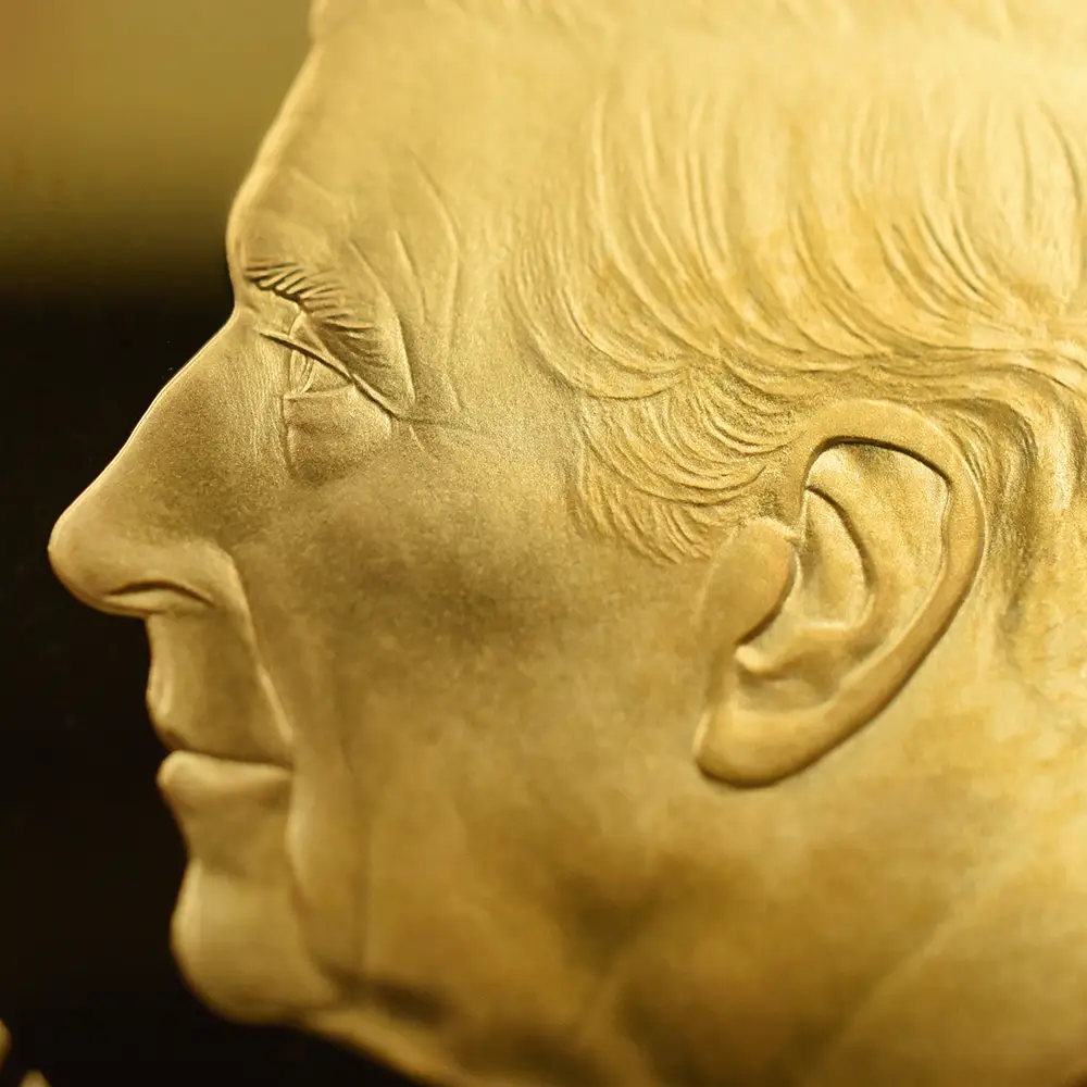 英国貨幣上にロビン・フッドが描かれる初の機会となるこの度の「神話と伝説シリーズ」第4弾ですが、前回のアーサー王コレクションと同じく、このロビン・フッドコレクションも三部構成によって展開される予定であることが既に発表されています。主役ロビン・フッドを描くこの度のバージョンの後、物語に登場する他の主要な人物たち、ロビンの恋人として描写される乙女マリアンとロビンの片腕として大活躍するリトル・ジョンを描くコインが今後続けて発表される予定です。今回ご紹介させていただくコインの裏面には、「大股のロビン」や「弓の名人」等のロビン・フッドを象徴する呼称の集約とも言える魅力的な英雄像が描かれています。中世英国に誕生し、同国の伝説として受け継がれてきたロビン・フッドの物語が英国コイン上に姿を見せることに違和感はありませんが、それによってこの不世出の英雄が一層世界的に認知されるきっかけとなることは英国貨幣界にとっての栄誉であるといえます。コイン表面には、2022年9月の代替わりに際して英国王位を継承した新国王チャールズ3世の「公式第一コイン肖像」が掲げられています。前国王エリザベス2世の公式肖像が右向きであったため、チャールズ新国王の肖像は左向きとなっています。代替わりに従って君主の肖像が逆向きに変更される英国貨幣界ならではの風変わりな習慣の始まりは、1660年に王政復古を成就したチャールズ2世の治世にさかのぼるとのことです。父チャールズ1世を処刑に追いやったイングランド共和国の護国卿オリバークロムウェルの肖像が左向きであったため、それに背を向けるという意思表示のために、チャールズ2世が自身の肖像を右向きに変更したことがこの習慣の始まりであったとされています。74歳と高齢で即位した現国王チャールズ3世ですが、この作品の生みの親であるマーティン・ジェニングスが創造した当肖像は、素顔の国王を情感豊かに描き出し好評を博したばかりか、国王自身の愛顧をも得ることができました。新たな君主の時代を迎えて、一層経験に裏付けされた実力を発揮するロイヤルミント。同機関が英国の永遠の英雄の理想像と風格を余すところなく描き出す当コインは、21世紀のモダンコインならではの新鮮な魅力によって広く万人に愛されることでしょう。