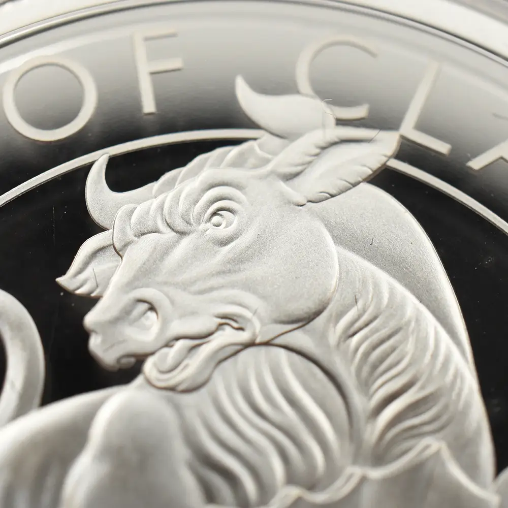 2023 チャールズ3世 ロイヤルテューダービースト クラレンスの雄牛 5ポンド2オンスプルーフ銀貨 未鑑定 箱付き