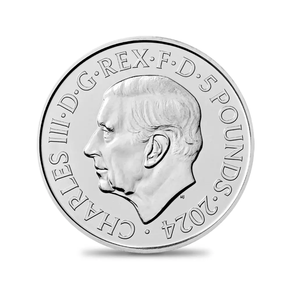 映画007シリーズが産声を上げた1960年代に焦点を当てるモダンコインコレクション「映画007の60年間」第1弾。その後、1970年代を回顧するラインアップが第2弾として発表され、こちらも空前の成功を収めました。そして、2024年の幕開けと共に発表となった当第3弾は、それまでの20年間にも増して魅力的な作品が目白押しであった1980年代のボンド・フィルムに捧げられるオマージュに他なりません。コイン裏面に描かれているのは、1983年公開の名作「オクトパシー」にて注目を集めたボンドの秘密兵器の超小型ジェット機「ビーディー」です。1980年代を代表する傑作スパイ映画に数えられる「オクトパシー」ですが、最先端のポップカルチャーを謳歌していた1980年代を想起させる作品として今日なおも親しまれています。当コイン上に蘇ったボンド愛用のジェット機「ビーディー」ですが、何よりも当時の時代背景を感じさせる点において当コインシリーズの主旨に適う意匠であると言えます。大空を飛翔する「ビーディー」ほどに、当作中でのアクションシーンと大活躍を思い起こさせるものは無いでしょう。コイン裏面には、2022年9月8日の前国王エリザベス2世の崩御に際して、英国王位を継承したチャールズ3世の治世初のコインポートレート「公式第1肖像」が掲げられています。73歳の高齢にて英国王となったチャールズ3世ですが、当初危惧されていたような不安定さは微塵も見せず、ますます国王としての貫禄を誇示されているように見受けられます。2023年5月6日にはイギリス連合王国が総力を結集して国王のための戴冠式を挙行し、全世界は英国の伝統を映像にて堪能し、英国もまたその存在意義を世に発信することができました。ロイヤルミントの名匠マーティン・ジェニングスによるこのポートレートは、何よりもその写実性によって英国コインの新たな伝説となり、英国貨幣界の新境地をも切り開くに至りました。1980年代を回顧しながらも新たな時代の息吹きを感じさせる当コインは、英国文化の未来永劫にわたる繁栄を暗示するモダンコインの秀作に違いありません。