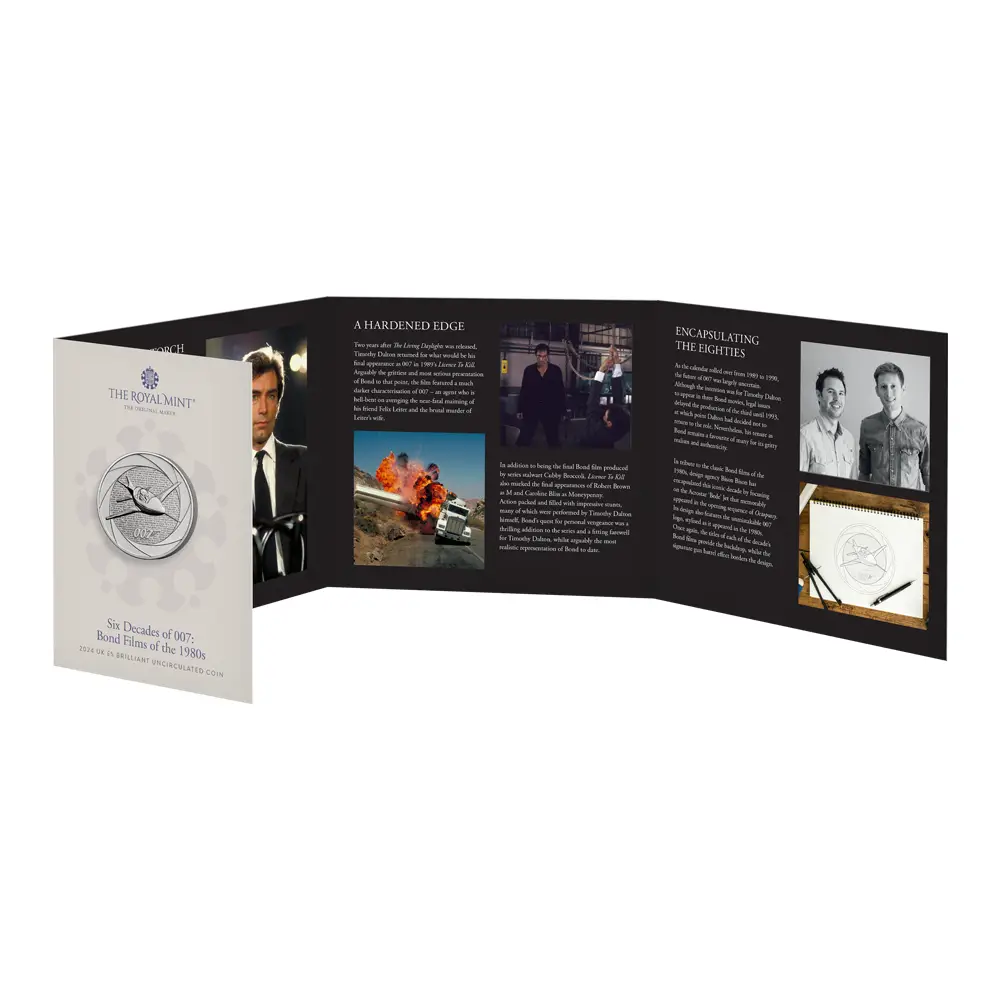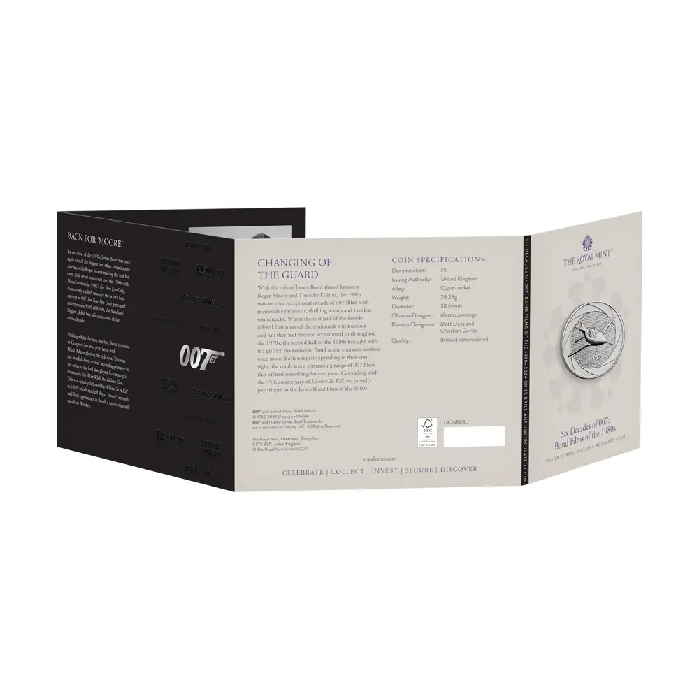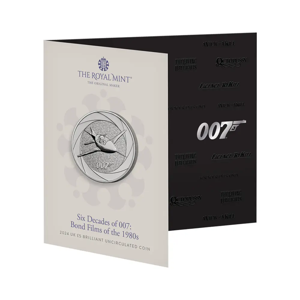 2024 チャールズ3世 「007の60年」ボンド映画記念シリーズ第3弾 「1980年代」 5ポンドBU白銅貨 未鑑定 パッケージ付き【ご予約承り品】