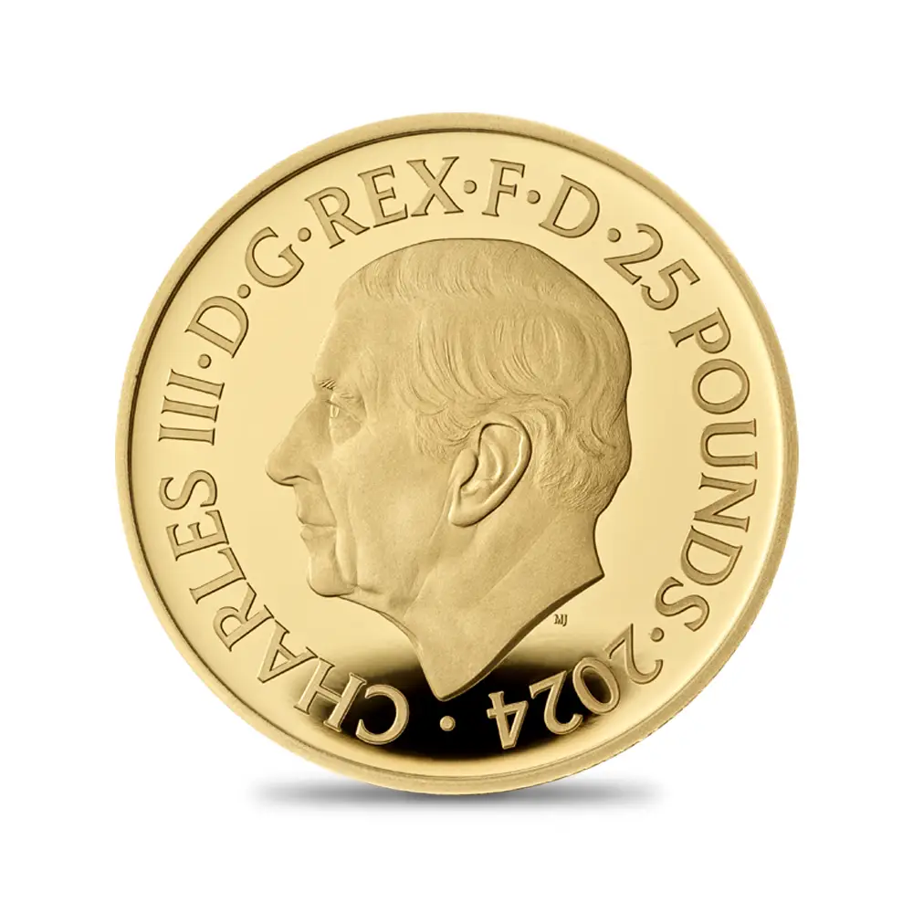 映画007シリーズが産声を上げた1960年代に焦点を当てるモダンコインコレクション「映画007の60年間」第1弾。その後、1970年代を回顧するラインアップが第2弾として発表され、こちらも空前の成功を収めました。そして、2024年の幕開けと共に発表となった当第3弾は、それまでの20年間にも増して魅力的な作品が目白押しであった1980年代のボンド・フィルムに捧げられるオマージュに他なりません。コイン裏面に描かれているのは、1983年公開の名作「オクトパシー」にて注目を集めたボンドの秘密兵器の超小型ジェット機「ビーディー」です。1980年代を代表する傑作スパイ映画に数えられる「オクトパシー」ですが、最先端のポップカルチャーを謳歌していた1980年代を想起させる作品として今日なおも親しまれています。当コイン上に蘇ったボンド愛用のジェット機「ビーディー」ですが、何よりも当時の時代背景を感じさせる点において当コインシリーズの主旨に適う意匠であると言えます。大空を飛翔する「ビーディー」ほどに、当作中でのアクションシーンと大活躍を思い起こさせるものは無いでしょう。コイン裏面には、2022年9月8日の前国王エリザベス2世の崩御に際して、英国王位を継承したチャールズ3世の治世初のコインポートレート「公式第1肖像」が掲げられています。73歳の高齢にて英国王となったチャールズ3世ですが、当初危惧されていたような不安定さは微塵も見せず、ますます国王としての貫禄を誇示されているように見受けられます。2023年5月6日にはイギリス連合王国が総力を結集して国王のための戴冠式を挙行し、全世界は英国の伝統を映像にて堪能し、英国もまたその存在意義を世に発信することができました。ロイヤルミントの名匠マーティン・ジェニングスによるこのポートレートは、何よりもその写実性によって英国コインの新たな伝説となり、英国貨幣界の新境地をも切り開くに至りました。1980年代を回顧しながらも新たな時代の息吹きを感じさせる当コインは、英国文化の未来永劫にわたる繁栄を暗示するモダンコインの秀作に違いありません。