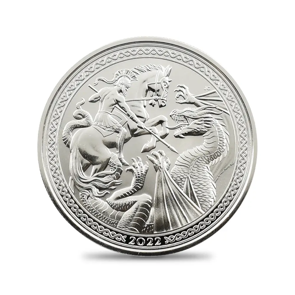 アセンション島 2022 エリザベス2世 聖ジョージ竜退治 2ポンド1オンスBU銀貨【1枚】(コインケース付き)