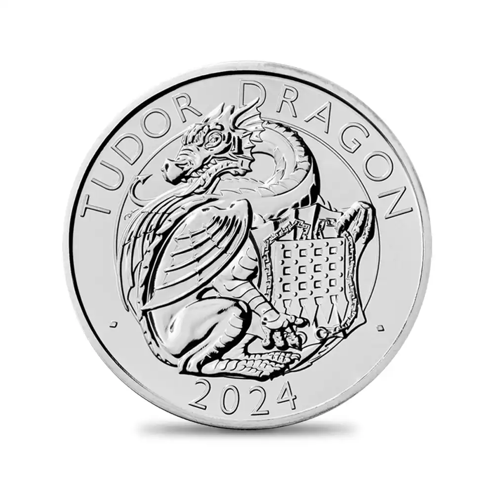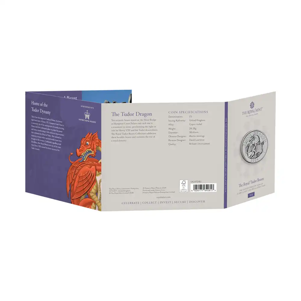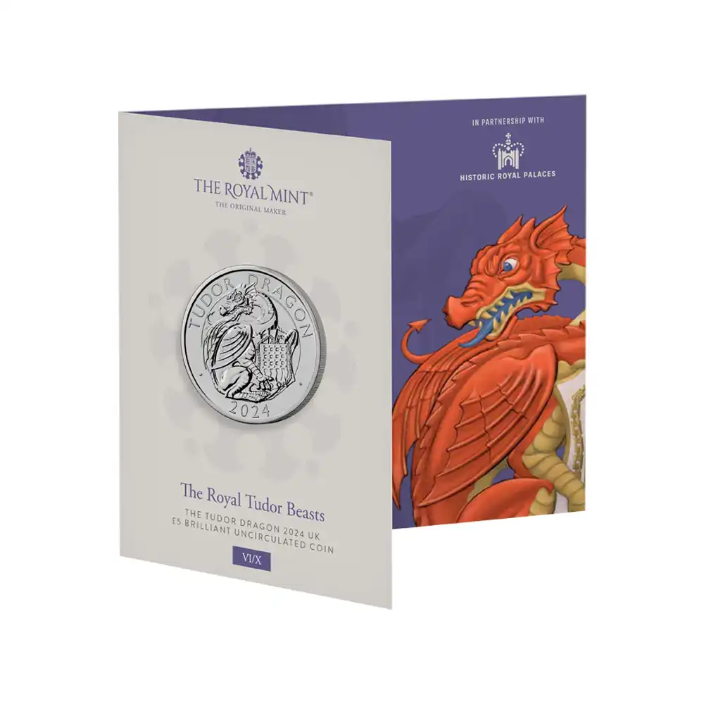 2024 チャールズ3世 ロイヤルテューダービースト テューダー朝のドラゴン 5ポンドBU白銅貨 未鑑定 パッケージ付き【ご予約承り品】