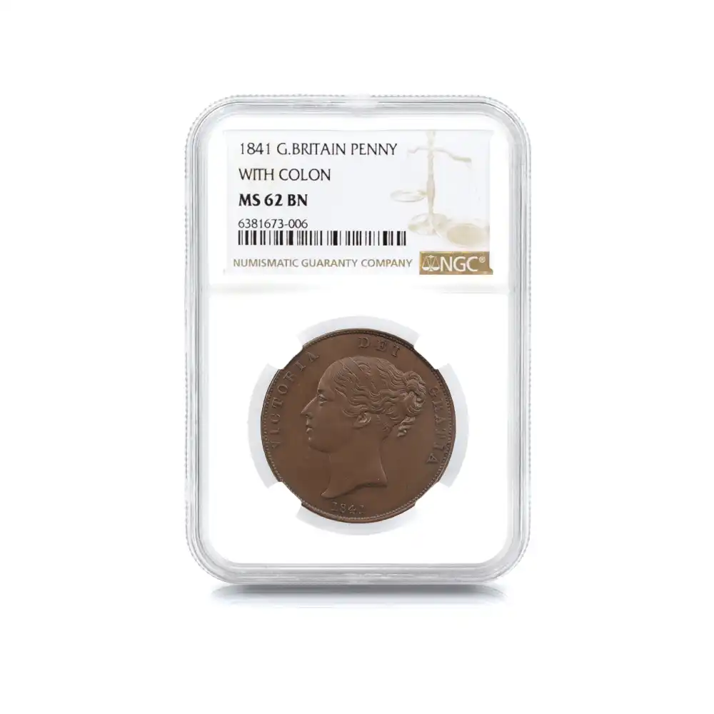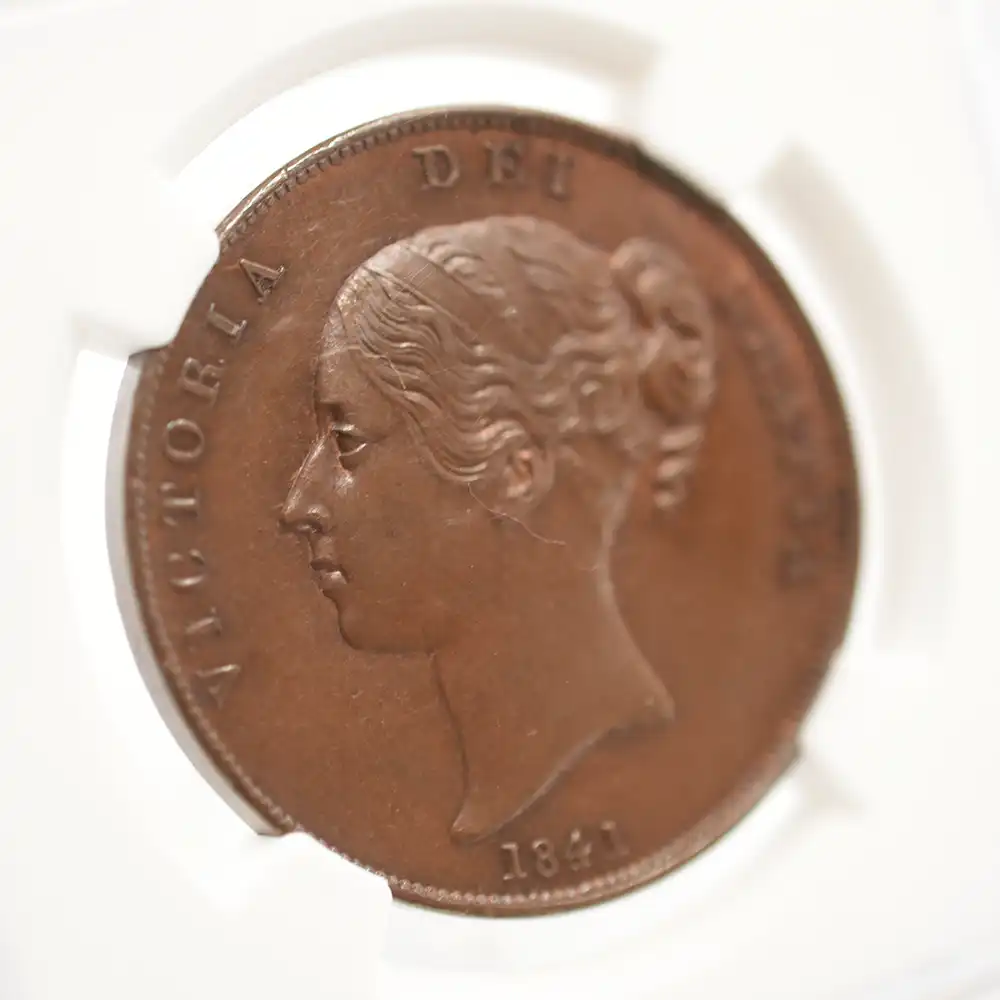 1841 ヴィクトリア女王 ブリタニア 1ペニー銅貨 NGC MS62BN WITH COLON