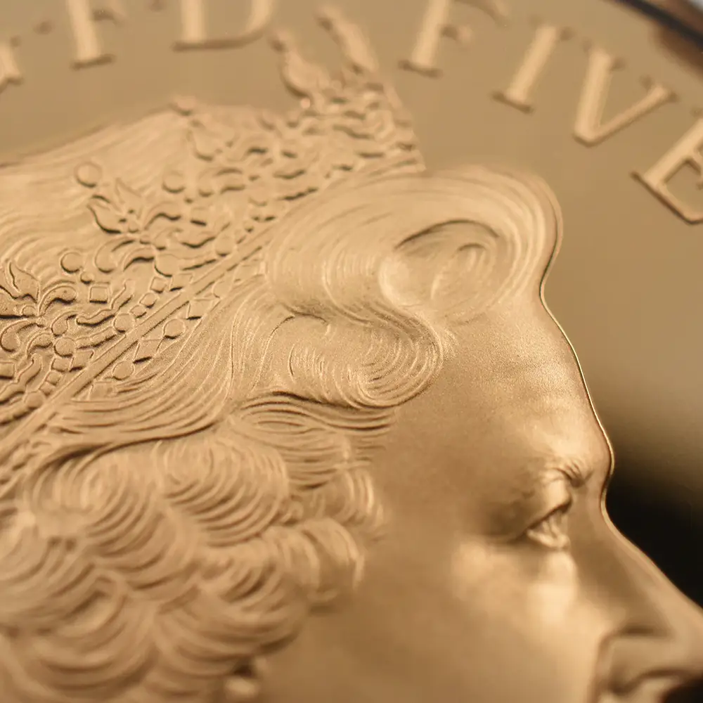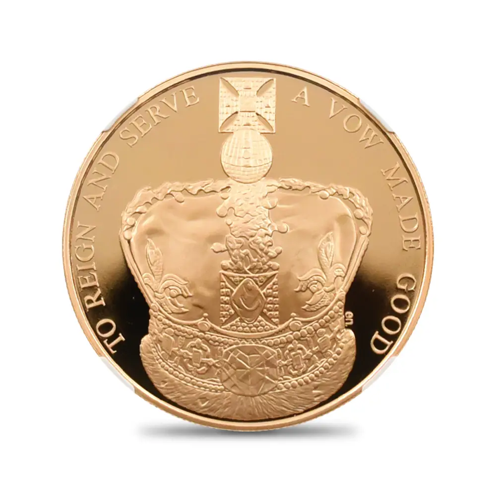 英国王室の至宝「大英帝国王冠」を描くエリザベス2世の戴冠60周年記念5ポンド金貨