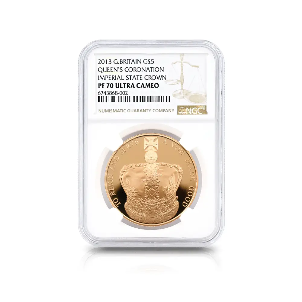 2013 エリザベス2世 戴冠60周年記念 5ポンド金貨 NGC PF70UC
