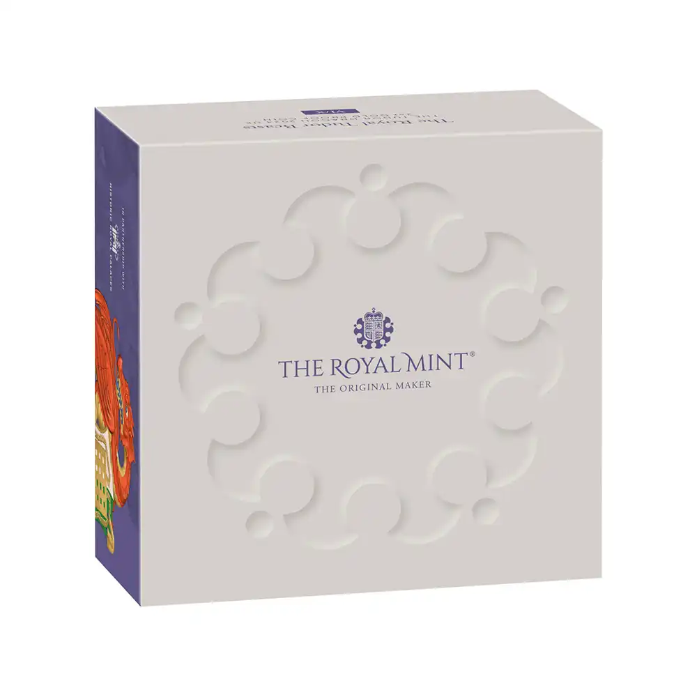 全10種の王室守護獣をコイン上にて紹介し、空前の人気を博した前作「クイーンズ・ビースト・コレクション」に続いて発表された「ロイヤル・テューダー・ビースト・コレクション」」は、テューダー王家ゆかりの守護獣全10種にスポットを当てる新企画です。前作「クイーンズ・ビースト」と共通する動物も紹介されていますが、基本的にはヘンリー8世自らによって選定された実在と架空の動物の紋章のみを取り挙げており、約500年の時を超えてテューダー朝の栄華を偲ばせます。そしてこの度の最新作は、ウェールズ王家に由来する「テューダー・ドラゴン」にスポットを当てます。ヘンリー8世の曽祖父に当たるオウエン・テューダーはいにしえのウェールズ王家の血族者でしたが、イングランド王ヘンリー5世の未亡人でフランス王女でもあったキャサリン・オブ・ヴァロワとの結婚によって英国王位の請求者となったという経緯がありました。古来ウェールズを象徴する赤いドラゴンをイングランド王室にもたらしたのはテューダー朝の創始者であるヘンリー7世でしたが、その息子のヘンリー8世によって紋章化され、「テューダー・ビースト」の一つとして恒久化されました。ハンプトン・コート宮殿モートブリッジに立つ立像の中でも一際精彩を放つ「テューダー・ドラゴン」は、東洋の竜とは異なる羽を持つ架空の動物として描かれています。当コイン表面においても両翼を持つ躍動感あふれる動物として描かれていますが、その胸元にはテューダー家の傍流であるビューフォート家を意味するポートカリス(落し格子)を描く盾が掲げられています。ルネッサンス期のイングランドを代表するドラゴンの意匠は、過去500年間にわたって歴代国王の個人的な空間を装飾し、今日の英国王室まで脈々と受け継がれてきました。そして「クイーンズ・ビースト・コレクション」に続いて、この度の新作にて再びモダンコイン上に見事に帰り咲きました。コイン表面には、ヘンリー8世の時代から500有余年の歳月を経て2022年に英国王位を継承した新国王チャールズ3世の「公式第1コイン肖像」が見られます。英国王位の後継者としてのチャールズ3世の正当性を証明する当ポートレートは、モダンコインの伝説として新時代を切り開いた傑作です。現代の英国王室の源流とも言えるテューダー家に敬意を表する新作「テューダー・ドラゴン」は、過去の英国王室史の総決算として現代に蘇った奇跡的名貨に他なりません。