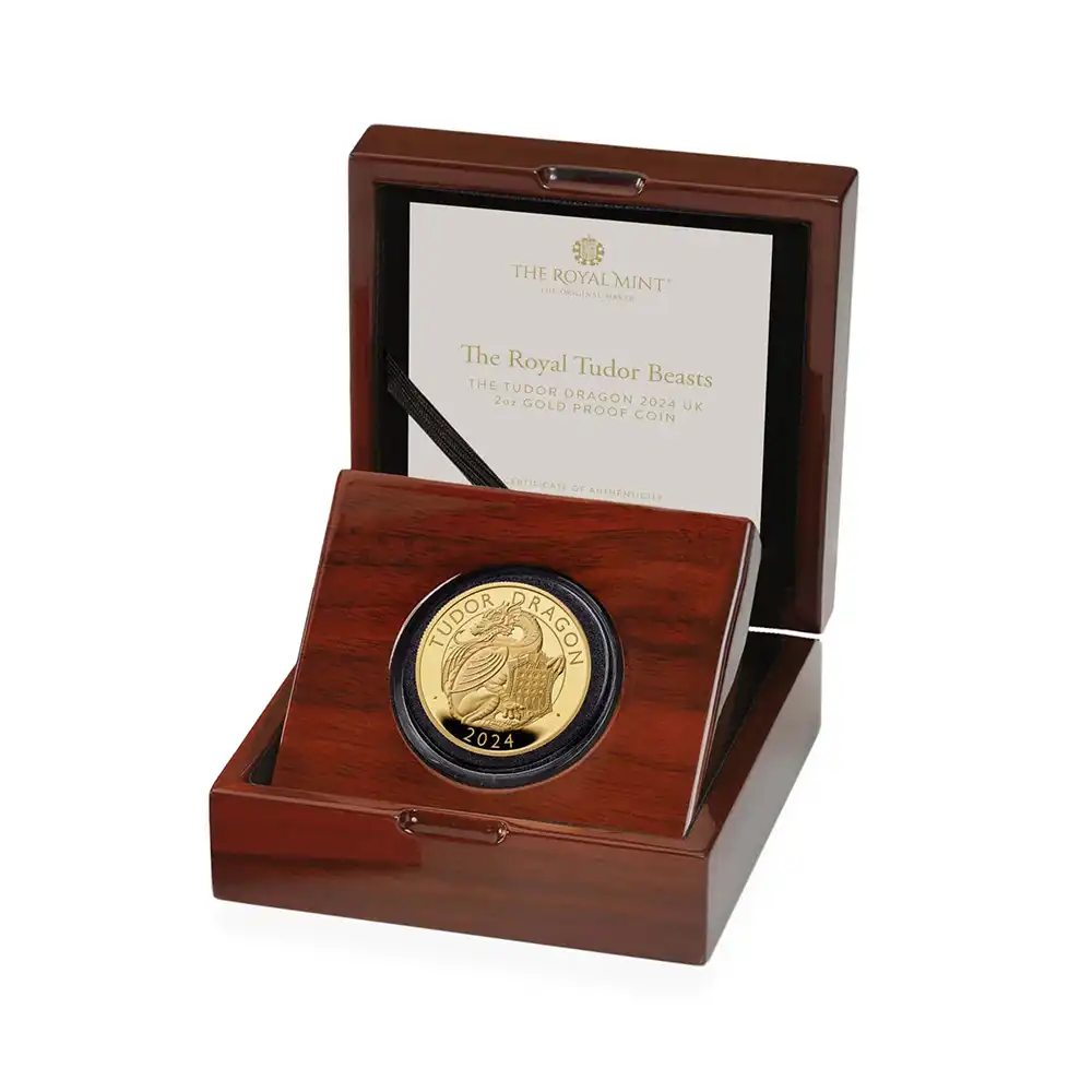 2024 チャールズ3世 ロイヤルテューダービースト テューダー朝のドラゴン 200ポンド2オンスプルーフ金貨 未鑑定 箱付き【ご予約承り品】