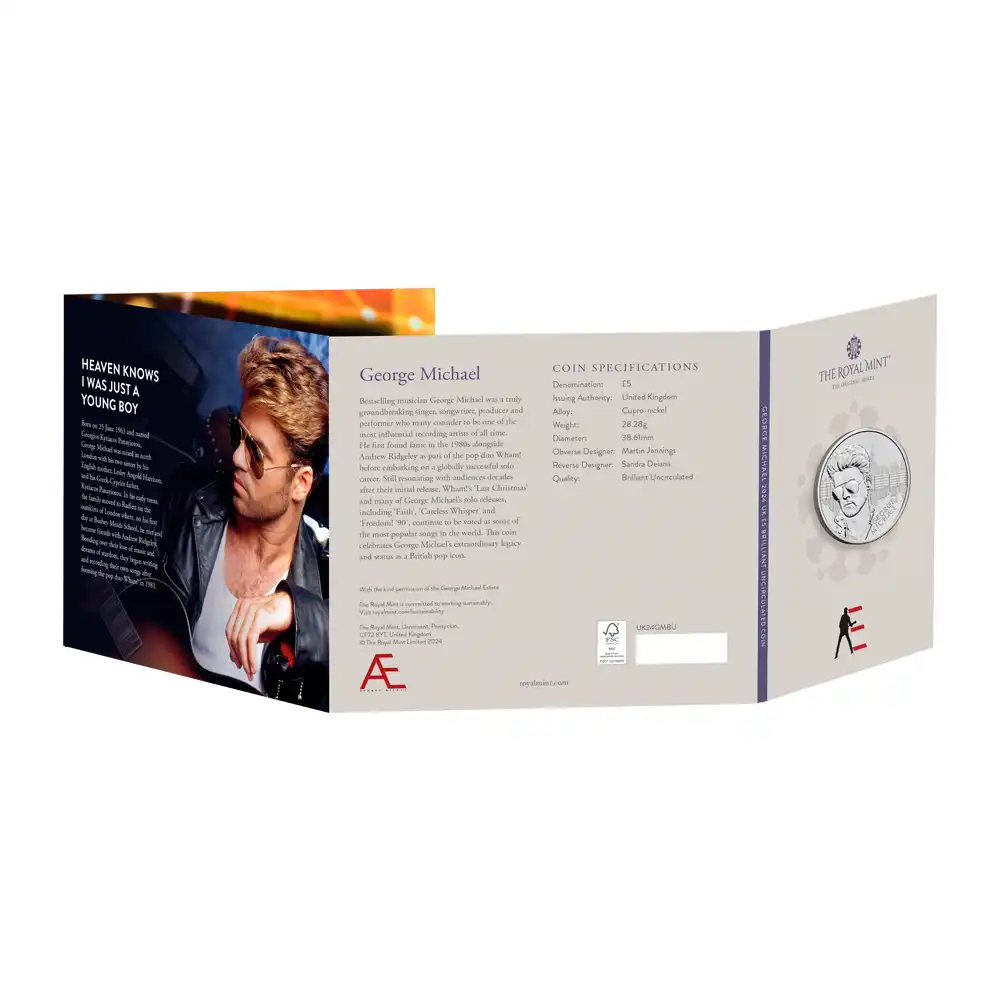 2024 チャールズ3世 ミュージックレジェンド 第8弾 ジョージ・マイケル 5ポンドBU白銅貨 未鑑定 パッケージ付き