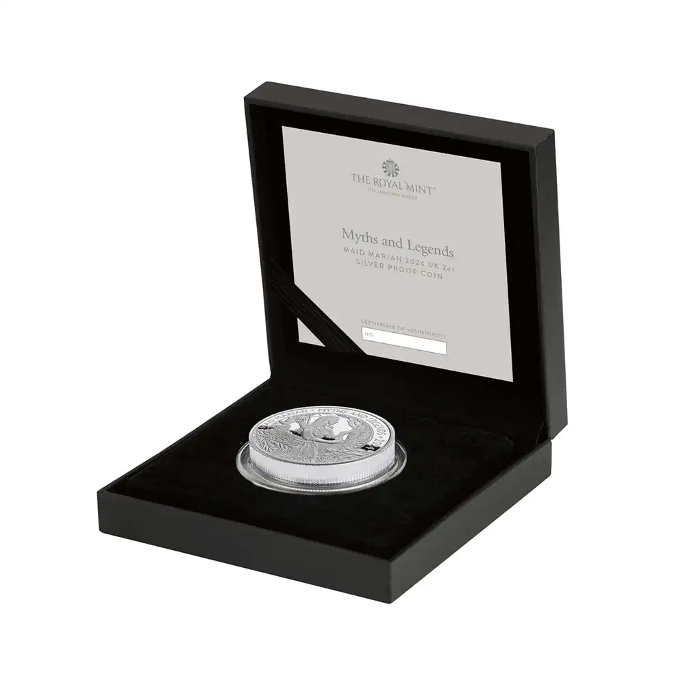 2024 チャールズ3世 神話と伝説シリーズ第5弾 乙女マリアン 5ポンド2オンスプルーフ銀貨 未鑑定 箱付き【ご予約承り品】