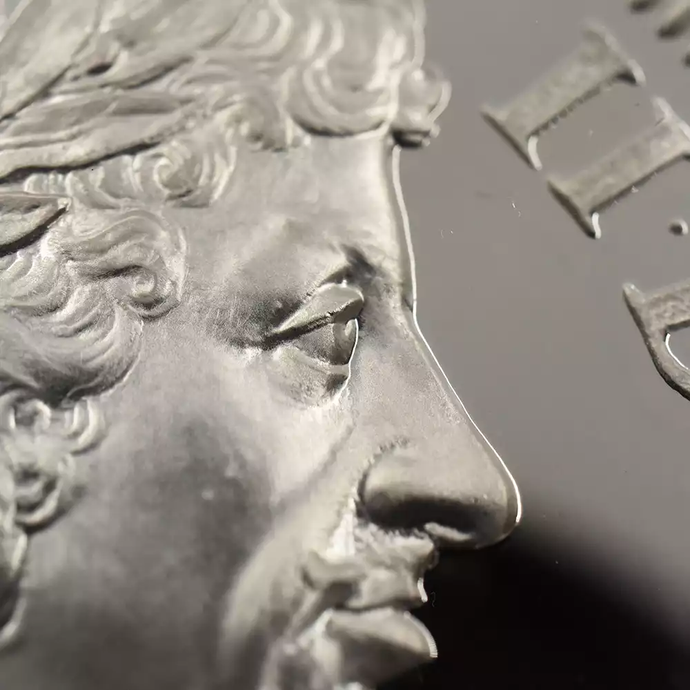 2019年の「ウナとライオン」の衝撃的なリリースによって、英国モダンコインの真価を世に知らしめた「グレート・エングレーバーズ・シリーズ=偉大なる彫刻家シリーズ」。その後、第2弾「スリーグレーセス」と第3弾「ゴチッククラウン」共に空前の成功を収め、英国コインの古典の魅力を全世界に発信しました。そして前作から約1年振りに満を持して発表されることになったのが今回の第4弾「ペティションクラウン」です。オリバー・クロムウェルが創始した共和政を打倒した王太子時代のチャールズ2世は、1660年に王政復古を宣言し、遂に英国王位を我がものとします。国王の即位の3年後の1663年に発行されたのが、17世紀の英国を代表する名貨の一つとして知られる「ペティションクラウン」のオリジナルです。過去にヴィクトリア期の名匠ウィリアム・ワイオンの3作品を取り挙げた「偉大なる彫刻家シリーズ」でしたが、今回はワイオンの生きた時代から遡ること約150年前の伝説の名彫刻家、トマス・サイモンの最高傑作と彼の生きたステュアート朝の激動の時代に焦点を当てます。ステュアート朝のチャールズ1世の治世下において初めて頭角を現したサイモンは、その後、オリバー・クロムウェルの共和政下に於いても主要なコインのデザインを任され、少なくとも王政復古までには名実ともに英国貨幣界の大家としての地位を確立していました。しかし新たに英国を率いることとなった国王チャールズ2世は、自らの治世の最初期を飾るクラウン貨のデザインを、英国を代表する名人として既に名を馳せていたサイモンに委ねる代わりに、オランダ出身の新進気鋭のコイン彫刻家ジョンとジョセフ・ローティアー兄弟に任せようと考えていました。最終的には、どちらかより優れた出来栄えを見せるほうが選定されるという条件の下に両者は技を競い合うことになります。結果的には熟練の技を誇るサイモンの作品と比して、オランダ人兄弟の作品は完成度の点においてサイモンの足元にも及ばなかったため、サイモンの作品が優先的に採用されることになります。その熾烈な競争の果てに生き残った作品こそが、「ペティションクラウン」の通称によって現在我々が知るところの17世紀を代表するこの大傑作に他なりません。