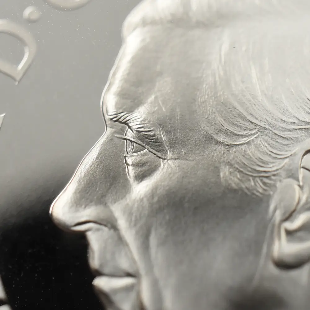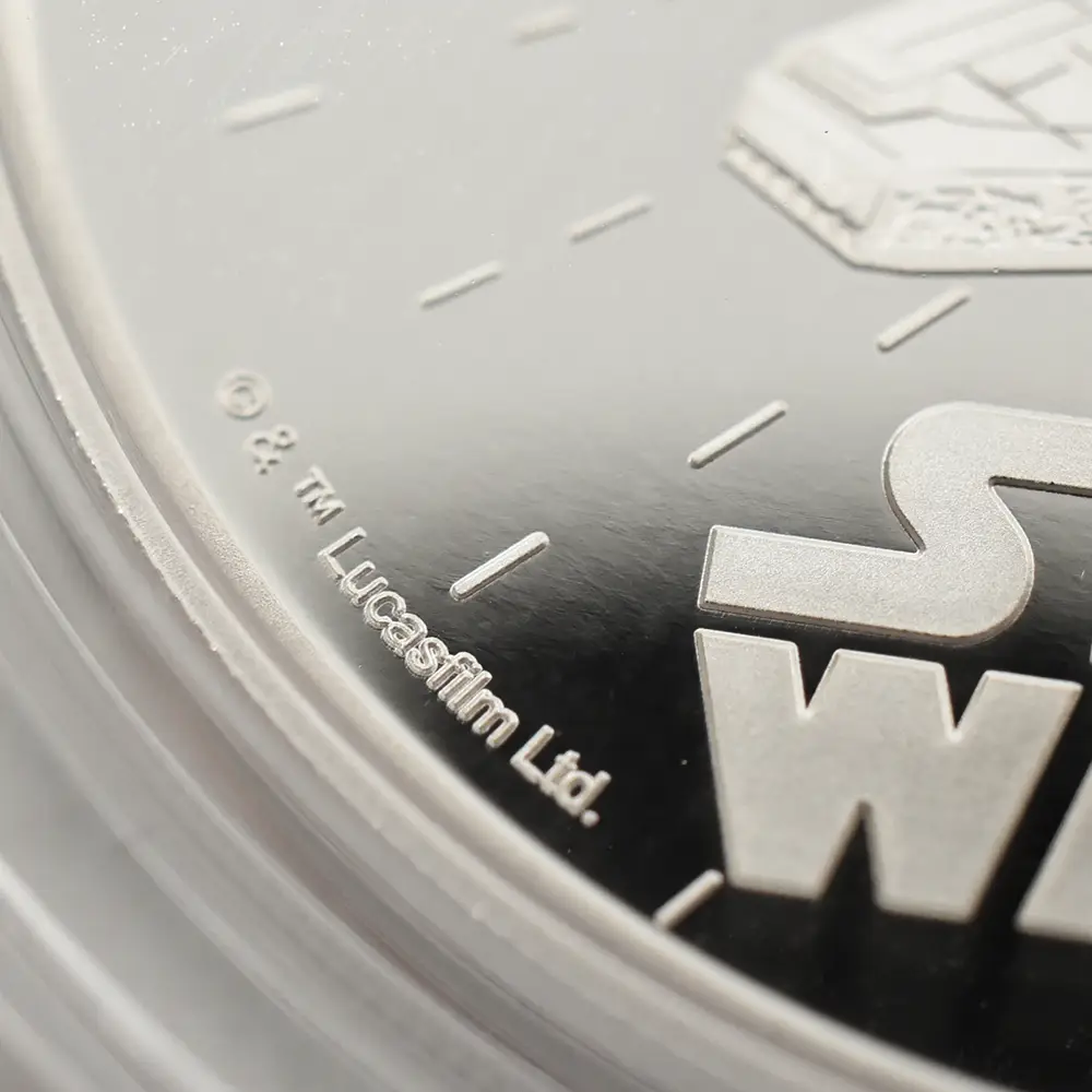 これまでに記録的な興行成績を収めてきた映画版「スター・ウォーズ」シリーズ。人類にとっては依然として未知の領域であるはずの広大な宇宙をテーマとして掲げながらも、地球に存在する人類を思わせる人間ドラマが繰り広げられているという設定は、シリーズ全作品を通しての一貫した特徴です。英国ロイヤルミントの最新作として発表されることになった当コインは、全4部からなる新たな「スター・ウォーズ・コレクション」の第1作目として、この度、解禁されることになりました。今回は、「エピソード3/シスの復讐」以降の映画に登場していた伝説的宇宙船「ミレニアム・ファルコン」のデザインを裏面に掲げるモダンコインをご紹介させていただきます。映画史上最も象徴的な戦闘マシーンであると評されるミレニアム・ファルコンの全貌を浮かび上がらせる当作品は、21世紀のコイン製造技術を駆使したロイヤルミントによるモダンコイン上に蘇りました。映画の作中におけるミレニアム・ファルコンは、反乱同盟軍が帝国に勝利した数々の戦いにおいて重要な役割を果たし、多くの作中にて圧倒的な存在感を発揮していました。外観を見る限りにおいては単にシンプルな貨物船の一種に見えないこともない同船ですが、数多くの強力な秘密装備が搭載されており、観る者に強い印象を与えます。コイン表面には、2022年の代替わりに際して英国王位を継承された新国王チャールズ3世の左向きの公式第1コイン肖像が描かれています。73歳で即位したチャールズ3世は今や現代英国史の主役として伝説上の人物となりつつありますが、その存在感を世に示す重要な役割を果たすのが、現在の国王のありのままの姿を写実的に描き出すことに成功した当コインポートレートではないでしょうか。国王自身のお気に入りでもあるとのエピソードが存在するこの作品は、ロイヤルミントが創造した現代コイン・ポートレートの最高傑作として誕生し、21世紀以降の英国貨幣界の新時代を切り開きました。初公開から今年2024年で47年目を迎える「スター・ウォーズ・シリーズ」ですが、その激動の年月は英国にとっては驚異的な発展を遂げた未曽有の時代でもありました。それは、母エリザベス2世を補佐しながらも、自身の王族としての務めを全うした王太子時代のチャールズ国王が生きた時代であったことを、コイン表面の肖像が如実に物語っています。2027年には初公開から半世紀を迎えるはずの「スター・ウォーズ・シリーズ」ですが、それを前にして、作品の壮大なスケールと人間のドラマの深奥を暗示する優れた意匠を刻むモダンコインが、この度、英国貨幣上に初登場となり、世界に贈られることとなりました。