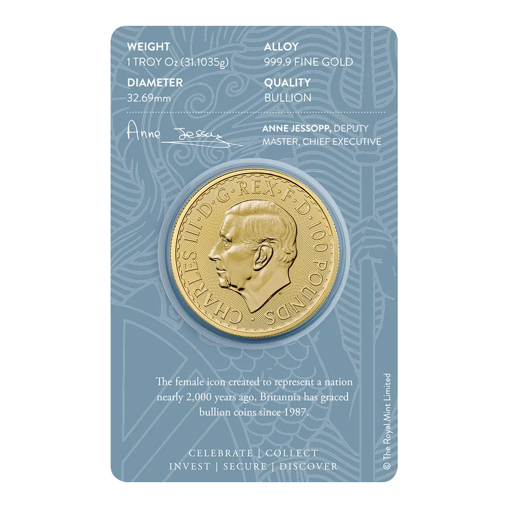 イギリス 2024 チャールズ3世 ブリタニア 100ポンド 1オンス 地金型金貨 【1枚】 (ブリスターパック付き)