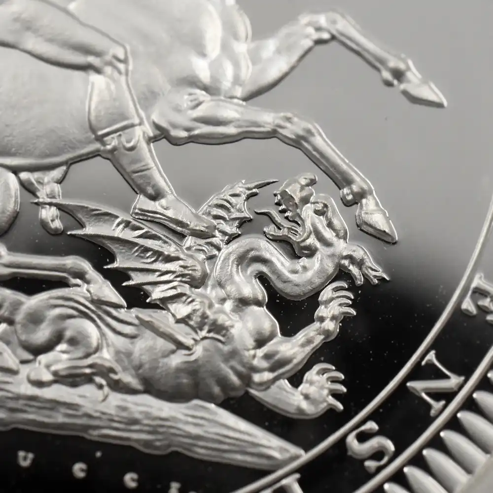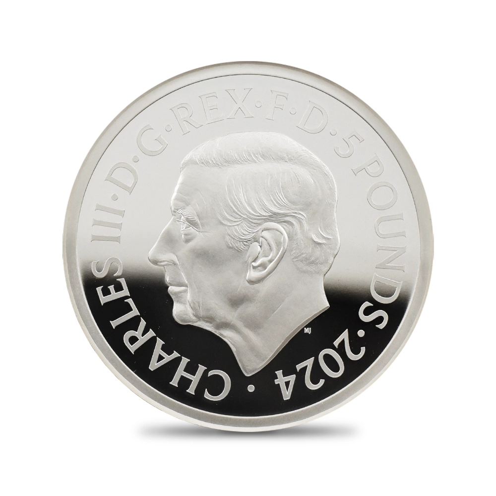 2024 チャールズ3世 ピストルッチ作聖ジョージ竜退治 5ポンド2オンスプルーフ銀貨 未鑑定 箱付き