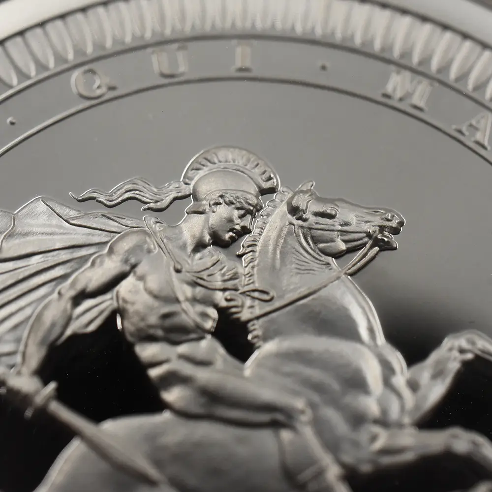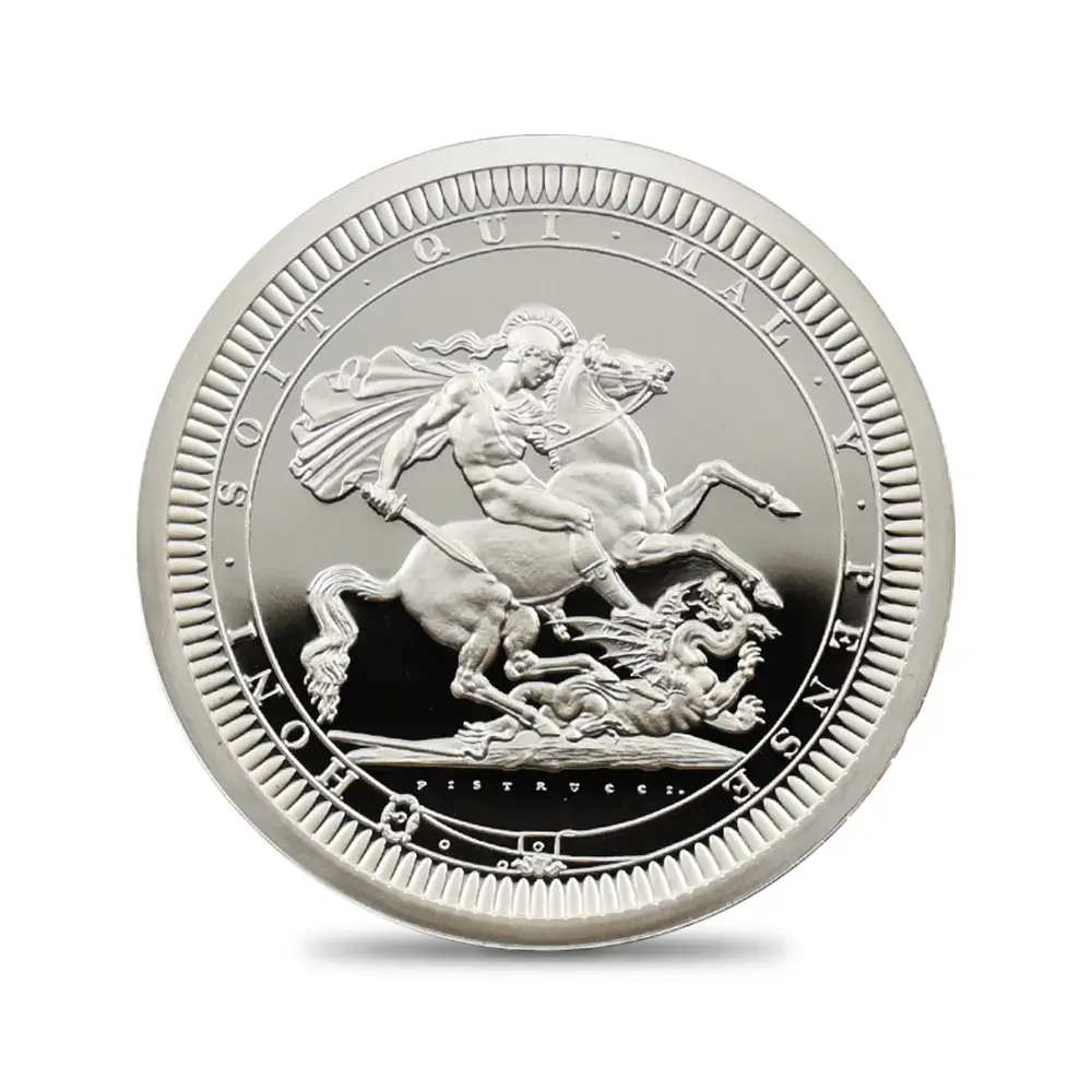 2022年9月8日のエリザベス2世の崩御に際して英国王位を継承した新国王チャールズ3世。「偉大なる彫刻家コレクション」の第4弾「ペティションクラウン」は、新国王を迎えたばかりの英国貨幣界が、モダンコイン屈指の人気コインシリーズの最新作として世に贈り、絶賛されました。それに続いてこの度解禁されることとなった第5弾は、ワイオンと並んで19世紀初頭の英国貨幣界を牽引した偉大なる彫刻家、ベネデット・ピストゥルッチ(1783-1855)の最高傑作「聖ジョージの竜退治」に捧げられます。ナポレオン戦争後の混乱の中、底知れぬ才能を秘めたこのイタリア人芸術家は、当時のロイヤルミント主任の招きに応じてイングランドに移り住み、そこを終生の地としました。ピストゥルッチの卓越した技量は当時のロンドンの上流階級の顧客層の愛顧を得て広まり、世に出たばかりのワイオンの職人技と双璧を成すほどに高く評価されていました。しかし二者の作風そのものは比較できない程に異なるものであり、また個性的でもありました。偉大なるコイン彫刻家一族の末裔として世に出たワイオンは生まれながらの職人肌の彫刻家であり、その仕事は非常に着実で安定していたと言われています。一方、ピストゥルッチはと言いますと、どちらかと言うと天才型の芸術家で、閃きに満ちた底光りするような強烈な作風を特徴としていました。ピストゥルッチが「聖ジョージの竜退治」の意匠を創造した頃の英国社会は、未だナポレオン戦争後の経済的荒廃から完全に脱却できていなかったものの、ロイヤルミントを中心とする英国貨幣界は金本位制を主軸とする新たな貨幣改革を推進する兆しを見せ始めていました。そのような社会背景の下に、一連の新たな貨幣の発行が急がれましたが、それらの新貨幣のデザインの一つとして採用されたのがこのピストゥルッチの「聖ジョージの竜退治」でした。古代ローマ時代の伝説の聖人ゲオルギウスの竜退治の場面を描くこの意匠は、古今東西の傑作コインの主題の中でも驚異的な人気を誇るものであり、同コレクションの第5弾として相応しいものであると言えます。また、ウィリアム・ワイオンとトマス・サイモンに続いて、ベネデット・ピストゥルッチの作品が選定されたことによって、歴史的コインコレクションとしての意義を強調しています。槍で悪の象徴であるドラゴンを退治する馬上の聖人の颯爽たる姿を、英国君主の仮の姿と見なすことも可能です。当復刻版の表面には、2023年5月6日に戴冠式を挙行したチャールズ3世の様式感溢れる「公式第1コイン肖像」が描かれています。コイン表裏に英国君主の威厳を掲げる当コインは、今日まで途切れることなく脈々と受け継がれてきた英国王室の未来永劫の安泰を象徴する新時代の傑作であると言えます。