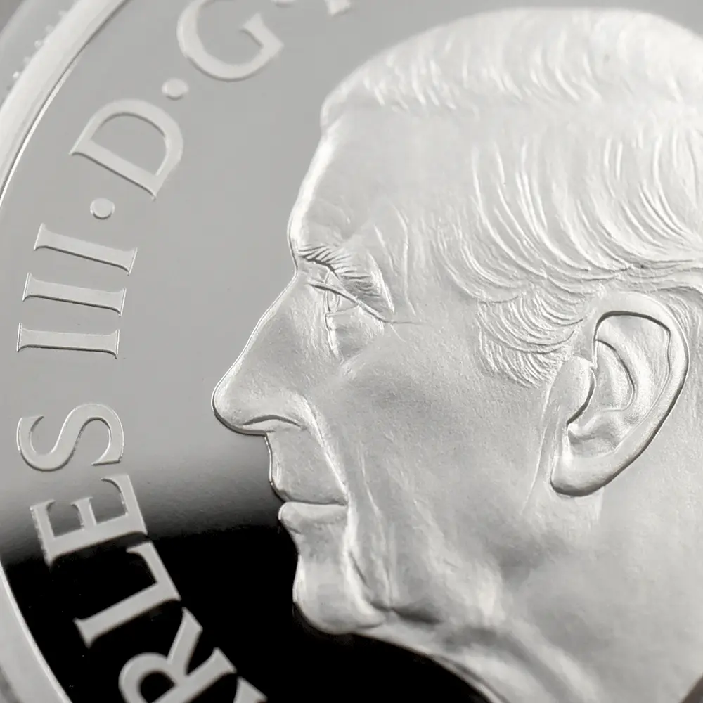 メダルの表面には、2022年の代替わりに際して英国王位を継承した新国王チャールズ3世の「公式第1コイン肖像」が描かれています。モダンコインのためのポートレートとしては最高傑作との声も聞かれるこの作品は、老年期に差し掛かった国王の人間味あふれる温かさを写実的に表現した感性豊かな逸品です。激動の19世紀初頭の英国を映し出すピストゥルッチの大作「ワーテルロー・メダル」がモダンコイン上に再現されることにより、19世紀初頭という英国貨幣にとっての最盛期が21世紀の今日、再び脚光を浴びることとなりました。