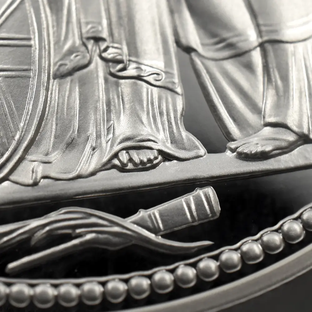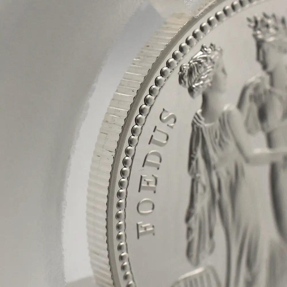 そこに描かれている三女神の競演の周囲には「Foedus Inviolabile=不可分の結合」を意味するラテン語碑文が掲げられており、物語に政治的な意味を与えることに成功しています。数々の魅力的なデザインを描く記念コインの発行によって過去にもコインマニアを始めとする多くのコイン関係者の注目を集めて来たオルダニー島ですが、この待望のリマスター版「スリーグレーセス」においても21世紀のモダンコインならではの新鮮な感動を我々に提供しています。