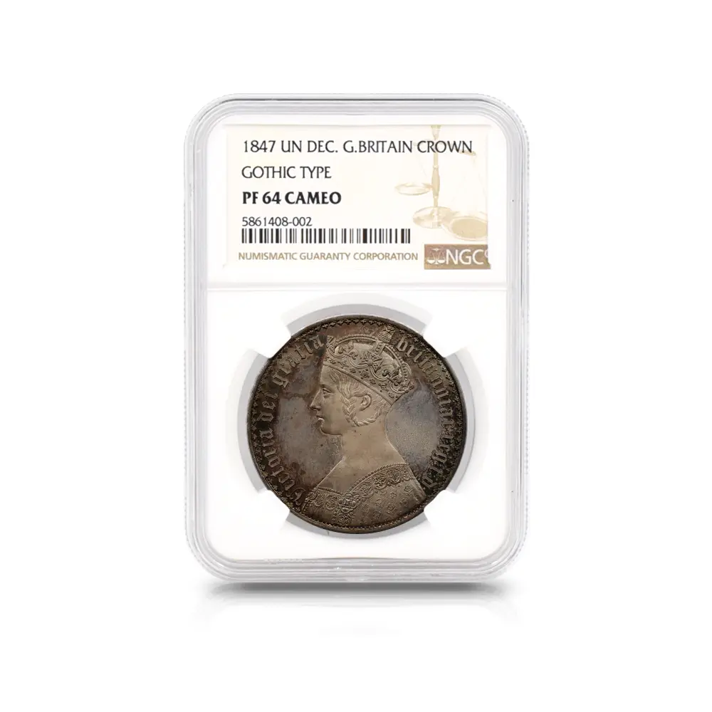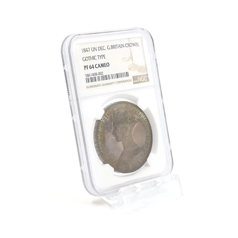 1847 ヴィクトリア女王 ゴチッククラウン銀貨 アンデシモエッジ NGC PF64CAMEO