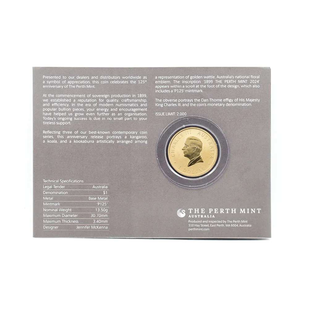 オーストラリア 2024 チャールズ3世 パースミント創立125周年記念 1ドルベースメタル貨 未鑑定 パッケージ付き